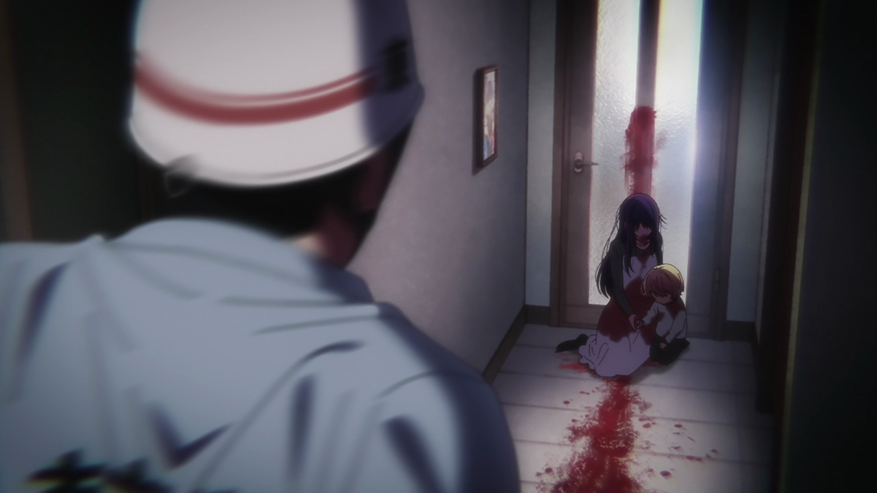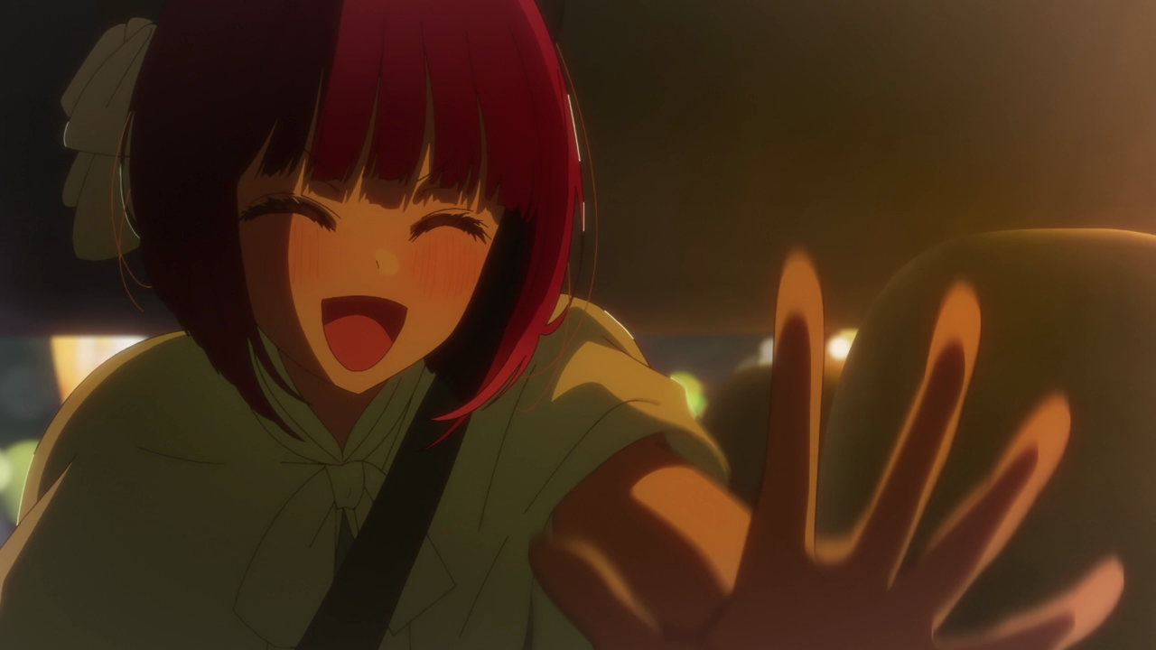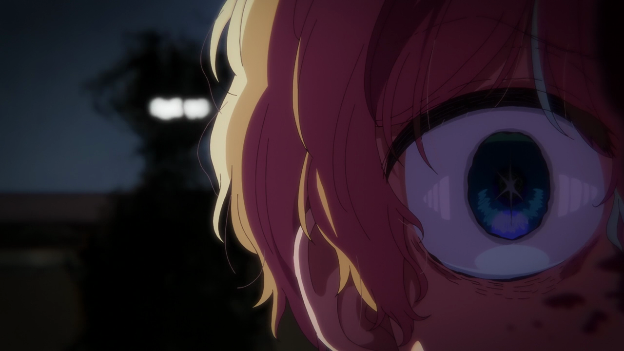 This had to be one of the most haunting scenes in the show with essentially a demonized version of Goro appearing to remind Aqua he doesn’t have any right to be happy after letting Ai die. I actually looked up the manga chapter for this specific scene and was surprised at how different it was visually with us just seeing regular Goro instead of the eldritch horror version of him in the anime. And I have to say, I do really like what the anime did more because I feel like seeing Goro like that illicits a more visceral response. Because it was TERRIFYING. I feel like just seeing regular Goro just standing there wouldn’t have made the audience fear for Aqua. While I do think it works fine for the manga, it probably wouldn’t have felt the same in the anime so I’m honestly glad they changed to make it more horrifying. It’s interesting how Goro seems to be a completely separate being in a sense now. Usually when we see reincarnation stories where the person reincarnated is completely themselves, but it seems as if there is suddenly a break between Aqua and Goro as if he’s become his own entity to drive Aqua to carry out his wishes. In a way, it feels like Aqua has somewhat become his own person but is still being piloted by who he was in the past. Though it could also be a representation of his severe survivor’s guilt. Because the boy NEEDS therapy after the trauma he went through considering his PTSD response. It’s sad to see how shackled he is to his guilt and need for revenge where he can’t even allow himself to think about the happiness he’s experienced.