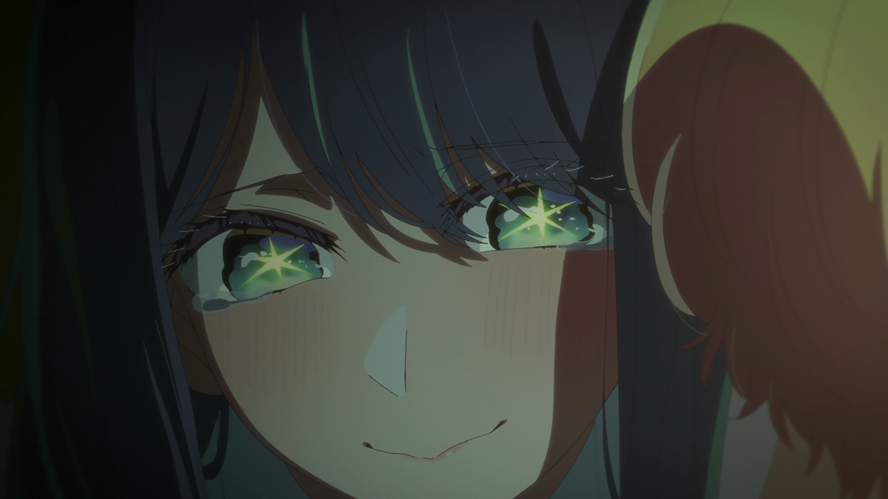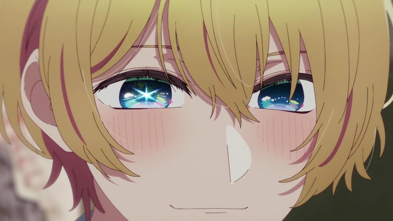 Anyways, things go from alright to oh no real fast when Kana unintentionally steps on a landmine when she tells Aqua to think of his mom dying as a way to illicit intense feelings enough to cry. I saw some people calling out Kana on a foul move but bro, SHE DOESN’T KNOW. If she did, 100% she wouldn’t have brought that up. She was just repeating what was told to her and follows it up by then telling him to think of times when he felt happy. But gosh… I can’t… it’s too cute… The way that he visably relaxes when he’s trying to remember moments where he was happy and the majority of them included Kana (even going as far as to have a segment purely for herself)… I just had to excuse myself and roll around a little bit because I was being overwhelmed with the cute and butterflies. And I just think it’s so heartwarming that we get to know that he was HAPPY when Kana started talking and fooling around with him again. And it was also cute that it was his sister’s smile of finally living out her dream that finally allowed him to fully embrace feeling happiness. Despite my issues with Aqua, I did make an audible “awww” when he actually gave a genuine smile. I don’t think we’ve ever seen him give such a happy, carefree smile since Ai’s death. And I legit felt happy for him… Only for that happiness to immediately be stripped away in the next scene.