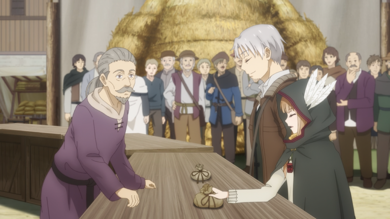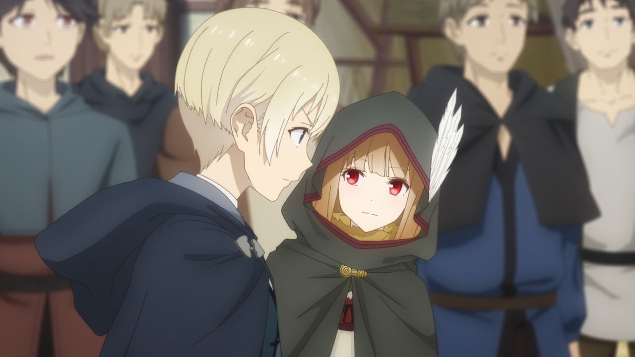 Fortunately Amati hadn’t, as the the one who ended up being the buyer Diana spoken of was none other than Holo. Amati had already lost the moment Holo decided she would make sure that he’d lose. But the plan of making Holo the buyer was actually something that was crafted up by Diana herself. Holo had initially sought her out in hopes for her to create a new tale about her hometown to comfort Lawrence, but Diana wasn’t interested in doing that. Instead, she had suggested they test Lawrence’s resolve. That was why Holo was wearing the three feathers and was constantly adjusting it in hopes for Lawrence to finally notice that she was working with Diana. The feathers were first foreshadowed when shown inside of Diana’s home, particularly when Lawrence had gone to visit her the second time in hopes for her aid to bulk buy the pyrite.But the most interesting reveal was the fact Diana is actually not Human. She is similar to Holo, as her true form is a bird. She too had a time she fell in love with a Human (monk), but unfortunately that ended poorly when he learned of her true form. It does explain a bit more why she was motivated to test Lawrence’s resolve, especially since he had asked her if there’s history of a Human and God becoming a couple.