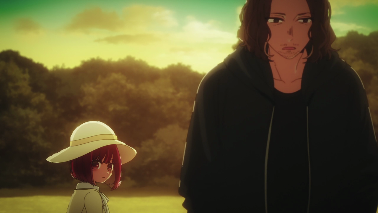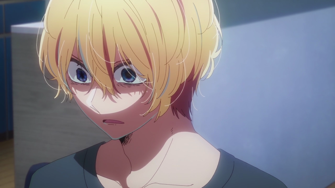 I feel like Aqua makes me go back and forth between shipping him with Kana, to this man cannot function in a healthy relationship and desperately needs therapy. One moment he’s just showing how supportive he is of Kana and allowing her to not worry about her fears because he’s there to back her up. And then the next he is exhibiting very concerning behaviors that would not do well in a relationship. His moment with Kana was very adorable, even if their montage of their time together did drag on a little too long for my liking. Especially since it feels like he’s constantly bringing the best out of her. But due to his extreme survivor’s guilt and his hellbent lust for revenge, it’s hard to allow myself to fully ship them because of how messed up he is. Everyone is trying to work through their inner-demons, but Aqua’s is so deeply rooted in his soul that he can’t allow himself any form or happiness. He has so much emotional baggage and is putting all his effort into the wrong places. Not gonna lie, but the aspect of him viewing acting as “not fun” and “painful” felt a tad silly to me. On a fundamental level, I get it since it contrasts with how fun acting is with the others. But in concept it breaks my suspension of disbelief a little. Though it’s definitely tragic. Especially since we just had an episode with Melt expressing how much fun acting is to Aqua.
