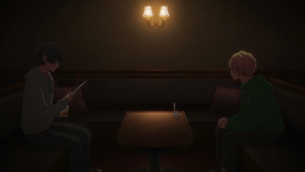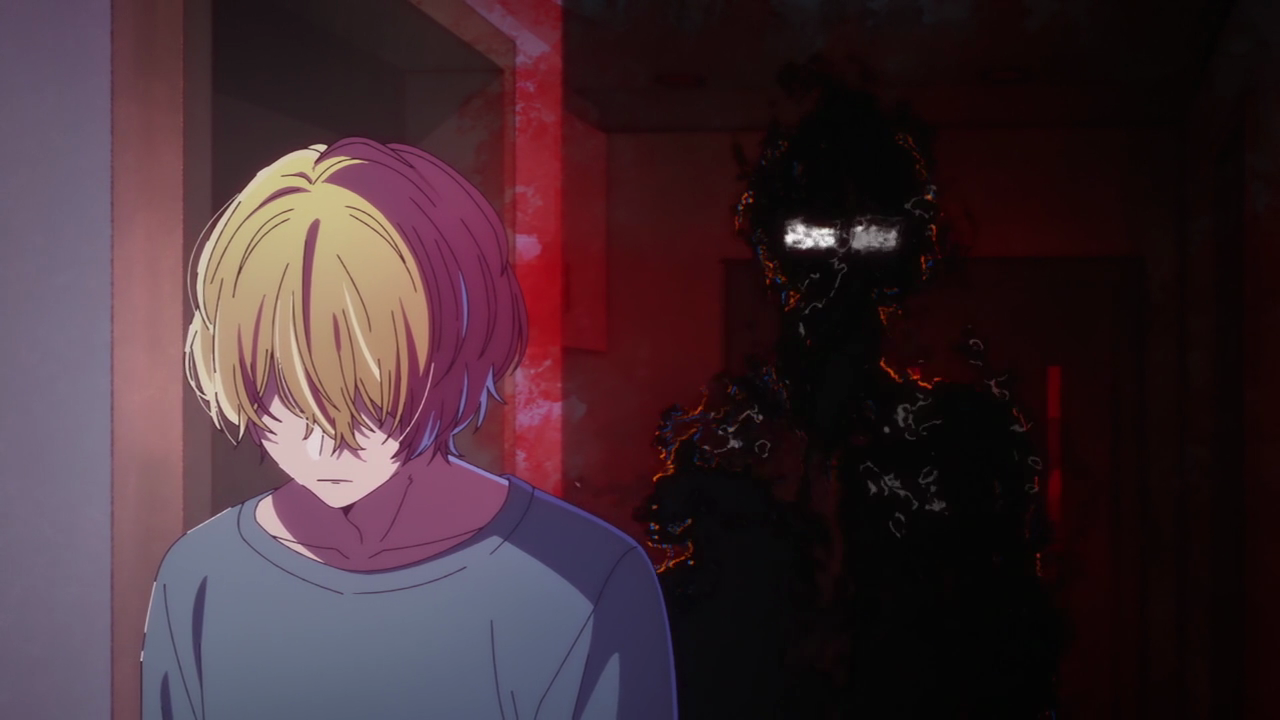 I am glad that it seems like Aqua is conscious of what exactly the “shadowy figure” is to him. The guilt, regret, frustration and overwhelming sadness he feels had seemingly manifested into a separate entity despite it just being himself. I’m not sure how I feel about him coming to terms with his feelings so soon. Especially since I do believe that he NEEDS to go to therapy and/or counseling. Though I do think that acting could be a good outlet to where he can put those feelings of despair into something productive. I thought he would be going down a darker path in acting than what was actually portrayed, but it seems like while he is taking upon those dark feelings, he is putting them towards something good in a way and was able to make a fantastic performance. They also just POPPED OFF with the animation and camera work during the fight scene in the play. Aqua truly sold his unhinged filled with deep rooted pain and sadness in his performance.