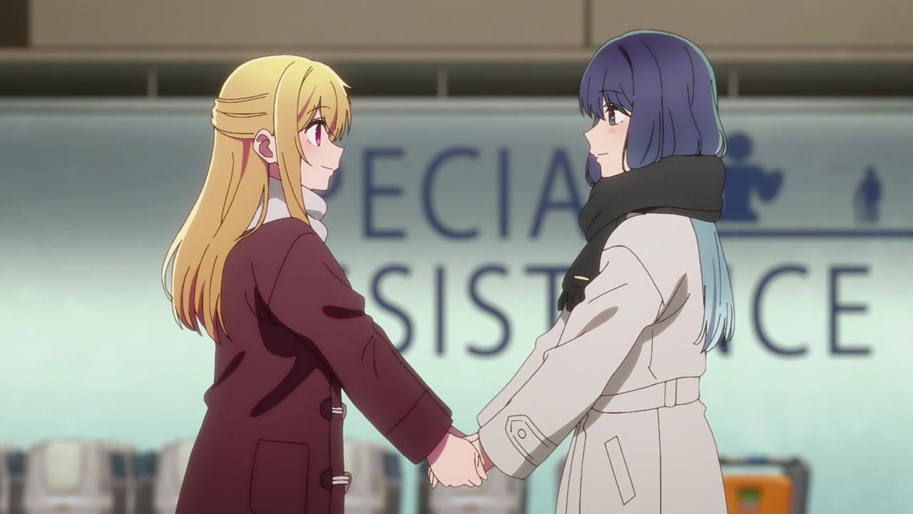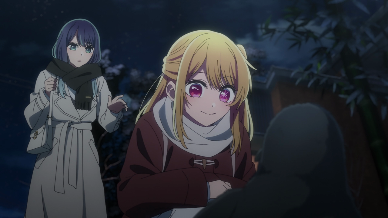 We’re finally getting some B-Komachi and Ruby focus with them finally receiving their first original song. Not only that, but they’ll be going to Takachiho to make music videos for their songs thanks to Memcho’s friend. But poor Kana… she do be just having the worst day. She probably felt like Akane was taking everything away from her. Aqua is one thing, but Ruby was like the last straw. Especially since Ruby was most likely Kana’s first actual friend. It was really cute to see a shot of them on the train ride with Kana leaning against Ruby. Also poor Memcho for just constantly being caught in between rooting for Akane and Kana while the two can’t stand the other. Friend to both parties can never catch a break lol.