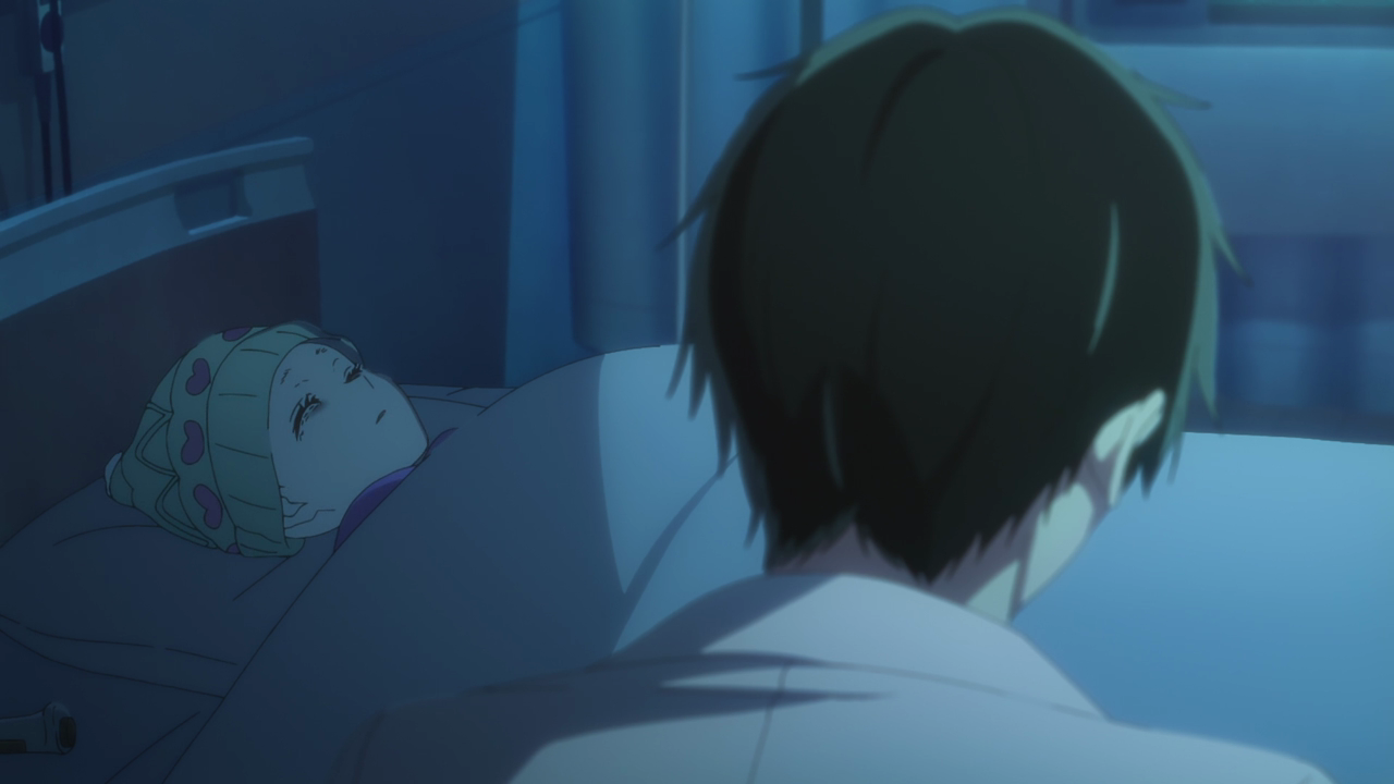 Speaking of poetic, the series itself even talks about how poetic it is for two people to grew up not really having a mother figure in their lives become the children of a mother who loved them so unconditionally. Which begs the question on what Sarina’s relationship with her mom was like. The only thing we can garner is that her parents didn’t even put too much effort in trying to see her when she was nearing her final moments. Didn’t even seem like they visited that often to begin with. Which feels incredibly cruel. On another note, what did they mean by Ai giving birth to soulless children? Were they expected to die if not for putting Goro and Sarina’s souls into them? Also who is this girl who is constantly surrounded by crows??? Is she another fantastical element to this story? Considering what happens later in the episode, it might not be too farfetched. Though considering how much she seems to know about the situation of the twins, I think viewers would already be aware.
