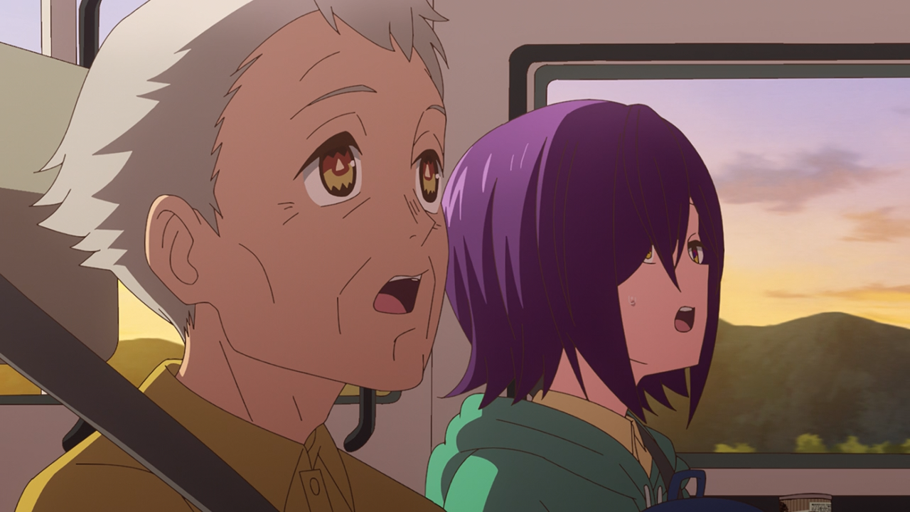 Oh my gosh, this show is an absolute riot! I certainly didn’t expect to have a double episode premiere, but it was a welcomed one. Both episode 1 and 2 had me laughing from start to finish. The way it kicked off with a freaking Kuma Kajin hitting their car window, and Gramps was just like completely unfazed by it because clearly it’s a normal occurrence in town (they even have sirens for when the Kajins appears). Unfortunately Gramps forgot to explain that to Chizuko after she arrived, so she got one heck of a surprise.