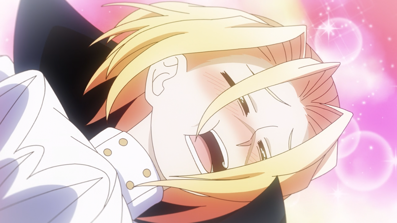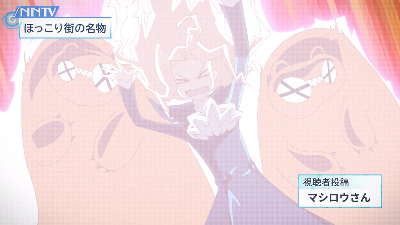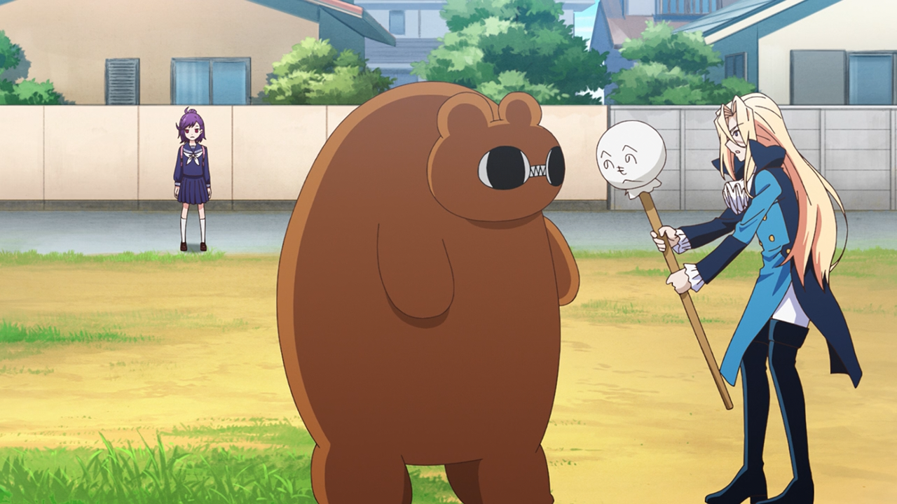 And that brings us to Chroma: the self-proclaimed ‘evil mastermind’ of his oh-so-evil organization Fossa Magna. This guy is actually a sad fool, a masochistic and coward who’s a far cry from the definition of ‘evil‘ when he’s doing petty things like flipping rugs, picking a fight with Berry Blossom can get his ass kicked because he’s a fan of her too. Chroma can wield magic, but among his short-comings is not having a good handle on the Kuma Kajins (as they just don’t always listen to him, and sometimes just straight-up lack the motivation to). He’s also mindful of abiding the law, where he (and Berry Blossom included) cannot use magic against ordinary people, they’ll get into trouble with law enforcement if they do. That’s why neither he couldn’t use magic when confronted by an armed robbery, and Berry Blossom resorted to cloth-lining the guy down, which was actually hysterical to see, especially since Chizuko was anticipating her to use magic in this situation.