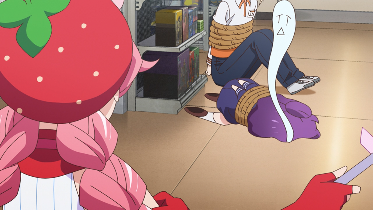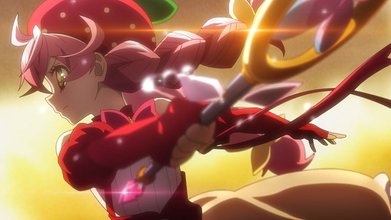 And finally Berry Blossom! We didn’t get to see a whole lot of her in these two episodes, but we saw how much she appreciated having a fan like Chizuko. She didn’t want to let her down when the robbery was happening, and mustered up her courage to face him. She was hoping to stay out of it thought because she doesn’t have a good relationship with law enforcement, so once that was dealt with, she quickly fled the scene. It’s probably only to be expected given how much damage both she and Chroma inflict onto property when they decide to duke it out. In fact, when I think about it, that’s probably the one main thing that is problematic, especially if magic isn’t used to repair it like we see in other magical girl series.