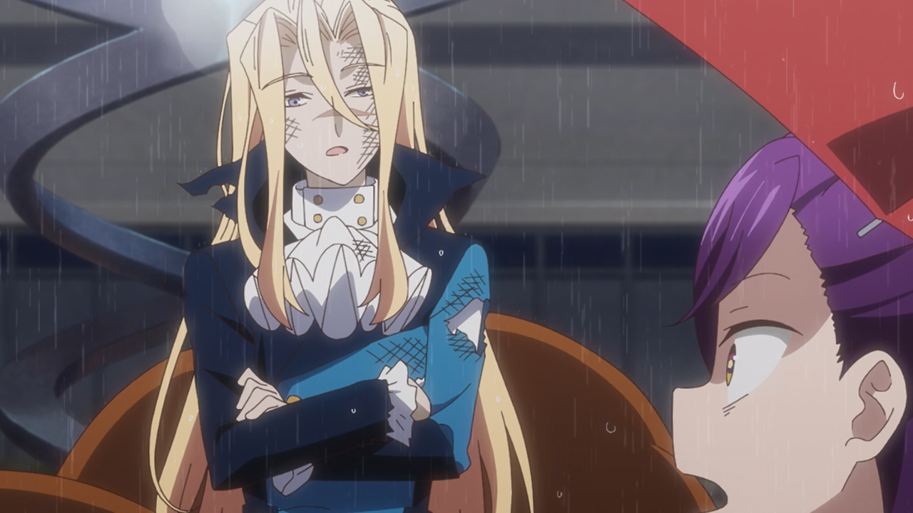Chroma’s powers stems from a contract, though it’s frankly hilarious how his powers follow the rules of a cellular data cap. He only can use so much magic within a month, and if he goes over the threshold, he’ll get capped out and it’ll take forever for before he can use it again. However he proved to be quite a shrewd one, capitalizing on the opportunity to get Chizuko to sign a contract when she previously refused because of her impatience. So while he may be stupid when it comes to plotting out traps and coming up with ways to fight against Berry Blossom, he at the very least has a silver-tongue when it comes to talking people into stuff. Heck we also saw him do that during the robbery, suggesting to the guy has great potential to do something more ambitious given he was holding Chroma and Chizuko hostage– and the robber even entertained the thought as flattery. So you could say that Chroma is certainly more of the type who probably would be better suited for as a recruiter than anything else.