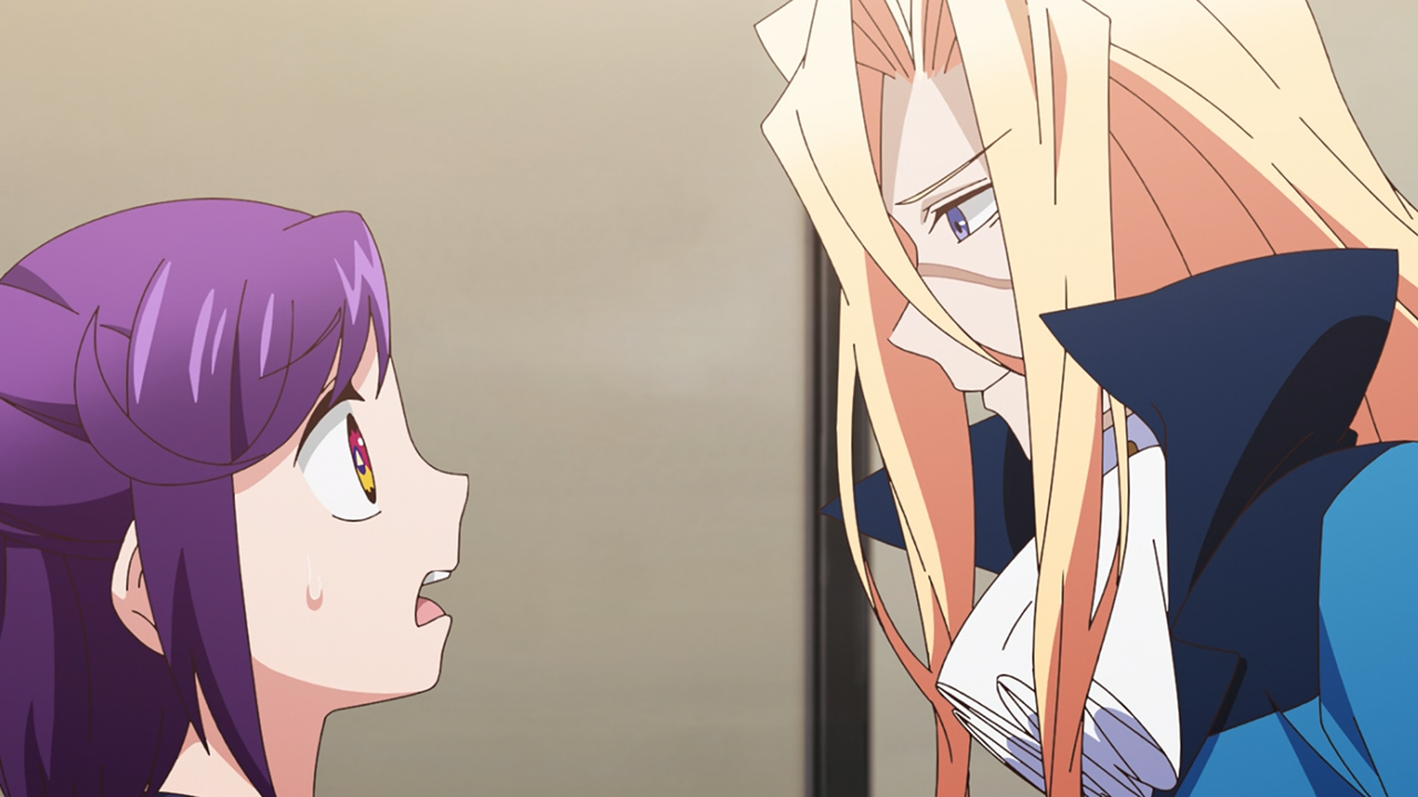 For Chizuko, she enjoys seeing the Berry Blossom engage with Chroma the so-called “evil leader” of Fossa Magna. However she finds herself getting recruited when Chroma hears her talking out loud how pathetic he is, and how boring the fights are because he just doesn’t come off as a threat. I found this bit to be especially hilarious because Chizuko’s reactions are so relatable when I’m watching magical girls shows. I don’t always want to see a sugar-coated villain, sometimes I just want someone who’s going to raise the stake and make it a tough battle for the girls because it’d be more exciting! So I plead guilty for that, hahahahahaha! Chroma is an exception in this case though, because he doesn’t appear to be cut out to be a super villain of any sorts. So because of that, super-fan Chizuko gets recruited as an “administrator” to Fossa Magna just get some help to spice up the fights against Berry Blossom.