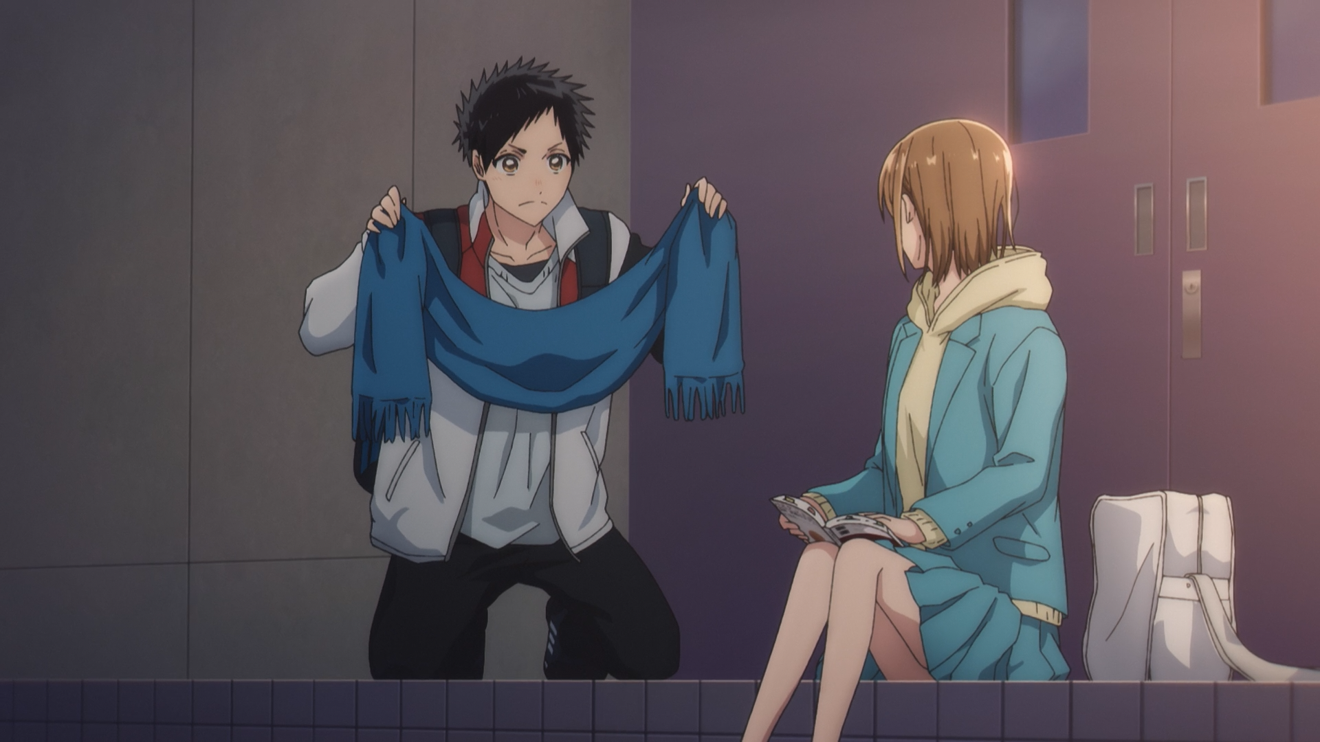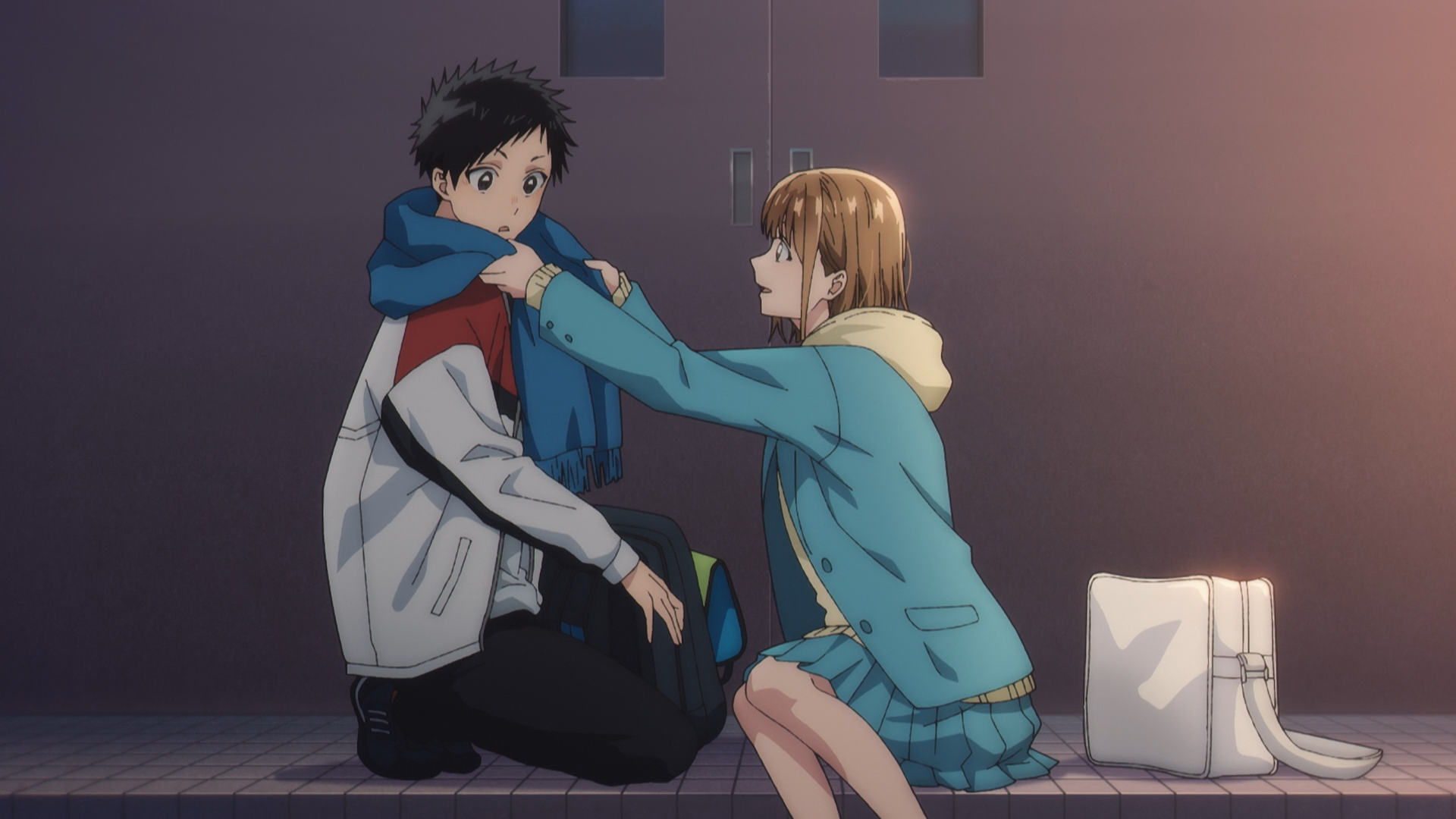 Taiki he has had a crush on Chinatsu for a long time now. He fell for her the day he happened across her in tears, practising after failing to qualify for nationals, he believes that was the day he fell for her, as her earnest determination to keep striving to better her game inspired him to do better too. He seems like a good guy, but we can see how he can turn into this adorable shy and awkward duckling when it comes to trying to interacting with Chinatsu. He’s always trying to be rationale about it, but then the way he just acts before thinking when trying to be considerate is so adorable. Just a sneeze and he’s like, “HERE TAKE THIS SCARF, I ALSO HAVE THIS WARM TEA, GLOVES, HANDWARMER–” how could you not giggle? Meanwhile, Chinatsu had a cool moment with the way she actually gave back his scarf when he had a sneeze, mindful of him not to catch a cold too. After-all, he needs to be in tip top form for his own sake too!