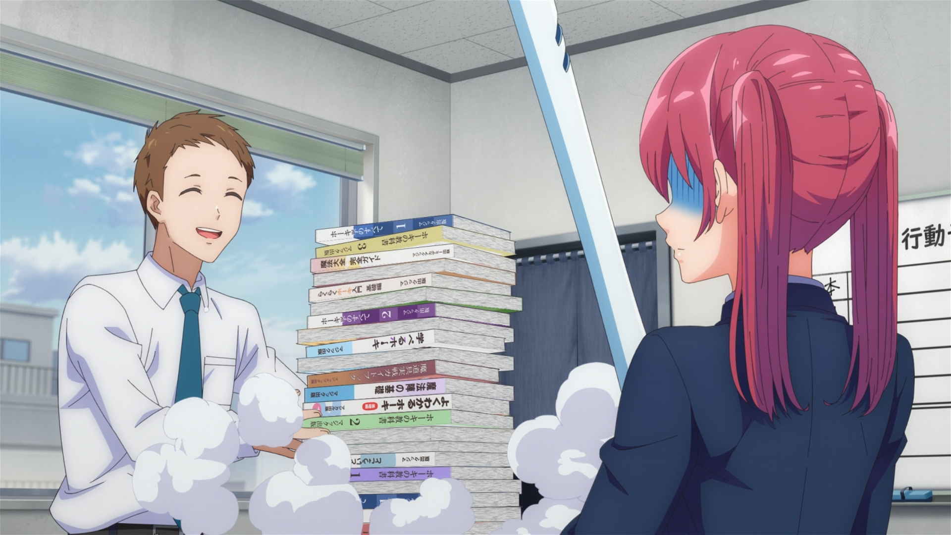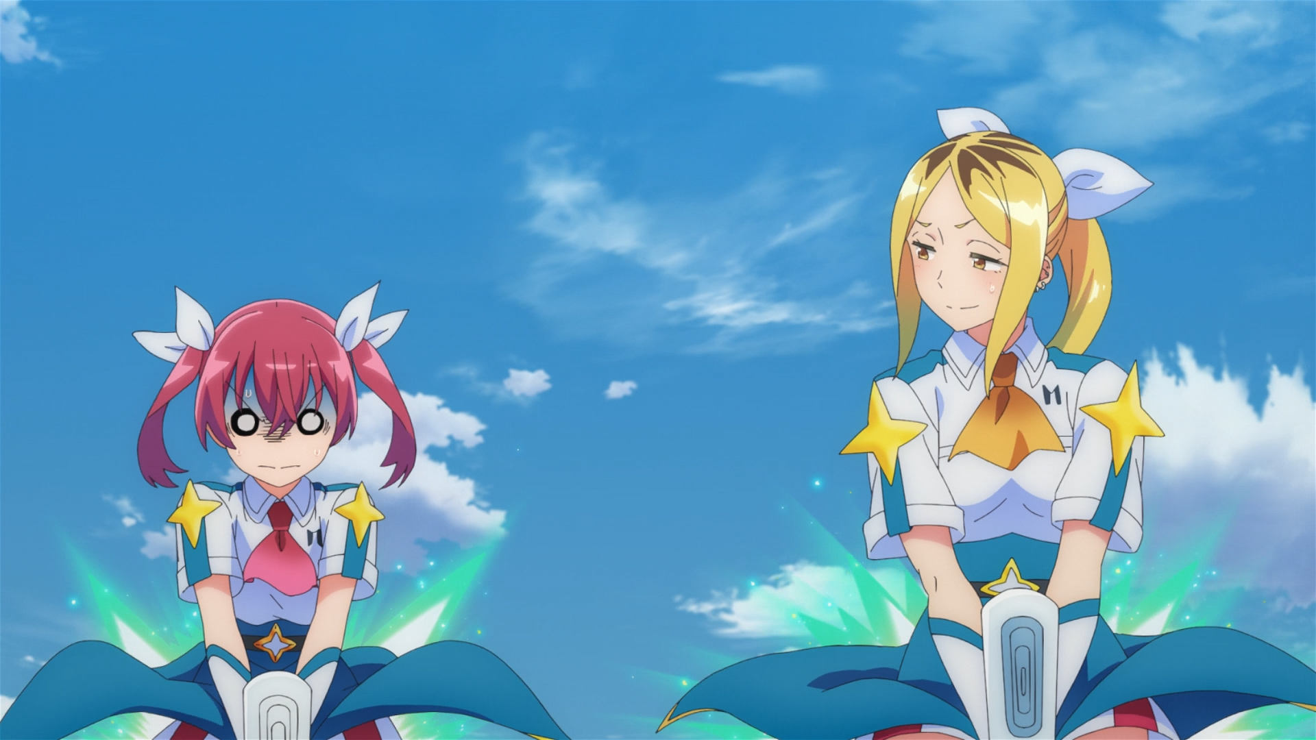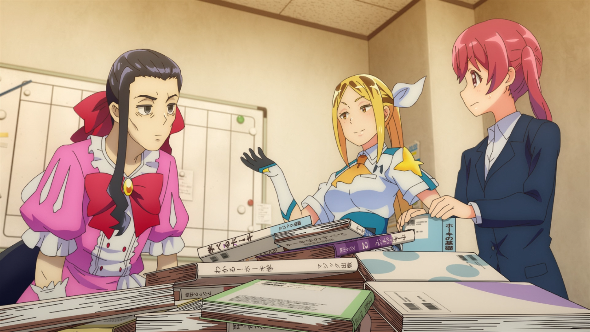 When it comes to the training process, it’s very much in Hitomi’s character to just wing it rather than read the books (which,now also explains why she has difficulty with understanding BROOM’s software). She’s very spontaneous out on the field, and usually coming up with things on the fly and following her instincts. But not everyone can learn that way, and we saw that with Kana. Learning how to fly the BROOM was a disaster. She just kept crashing into everything. But that’s only to be expected, because Kana’s the complete opposite of Hitomi, which is why she makes the perfect partner to balance her out. Kana’s more patient and is book-smart, which gives her the advantage to understand and memorize BROOM manuals in ways most people can’t. This is Kana’s strength, and that’s why Boss Man rightfully told her it’s a great talent to have.