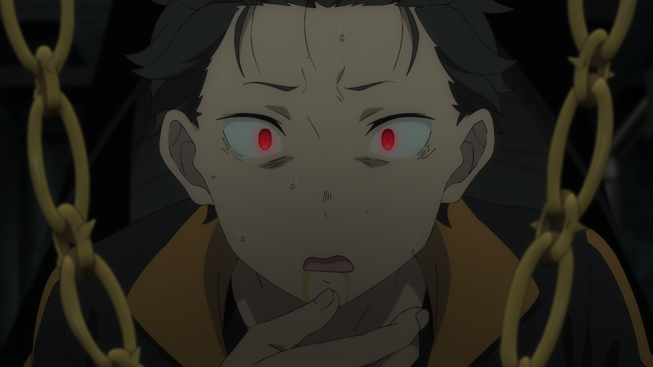 Sheesh, if I thought last episode was gruesome, this episode proved to be even more bloody as it felt a lot less censored in terms of gore and it made me so uncomfortable. The series literally goes out of its way to show how bad things turn out when Subaru attempts to shoulder the burden on his own or run in without knowing specific things. In the case of the former… that felt like it was the absolute worst death Subaru has sustained from the three deaths he suffered against Sirius. The way she threw him off the side of the edge and snapped him into being hung was so viscerally disturbing with how things literally came out of him when it happened. And ain’t no way I was gonna slow mo that to get a better look at what they were. I’m honestly surprised he didn’t die right then and there because I would have thought that impact would have just snapped his neck. It probably would have been better if he did though considering death by suffocation must be so much worse than a quick death. I would have thought Subaru would have learned to not go into things on his own because they always end terrible.