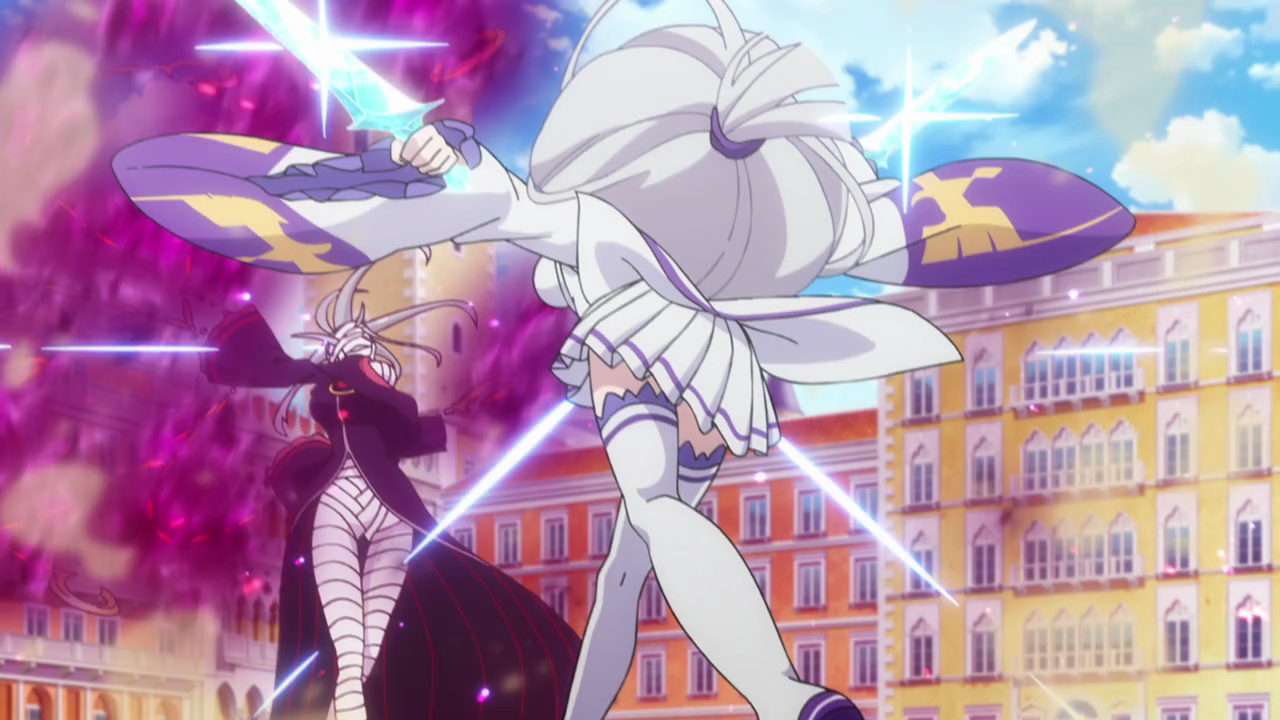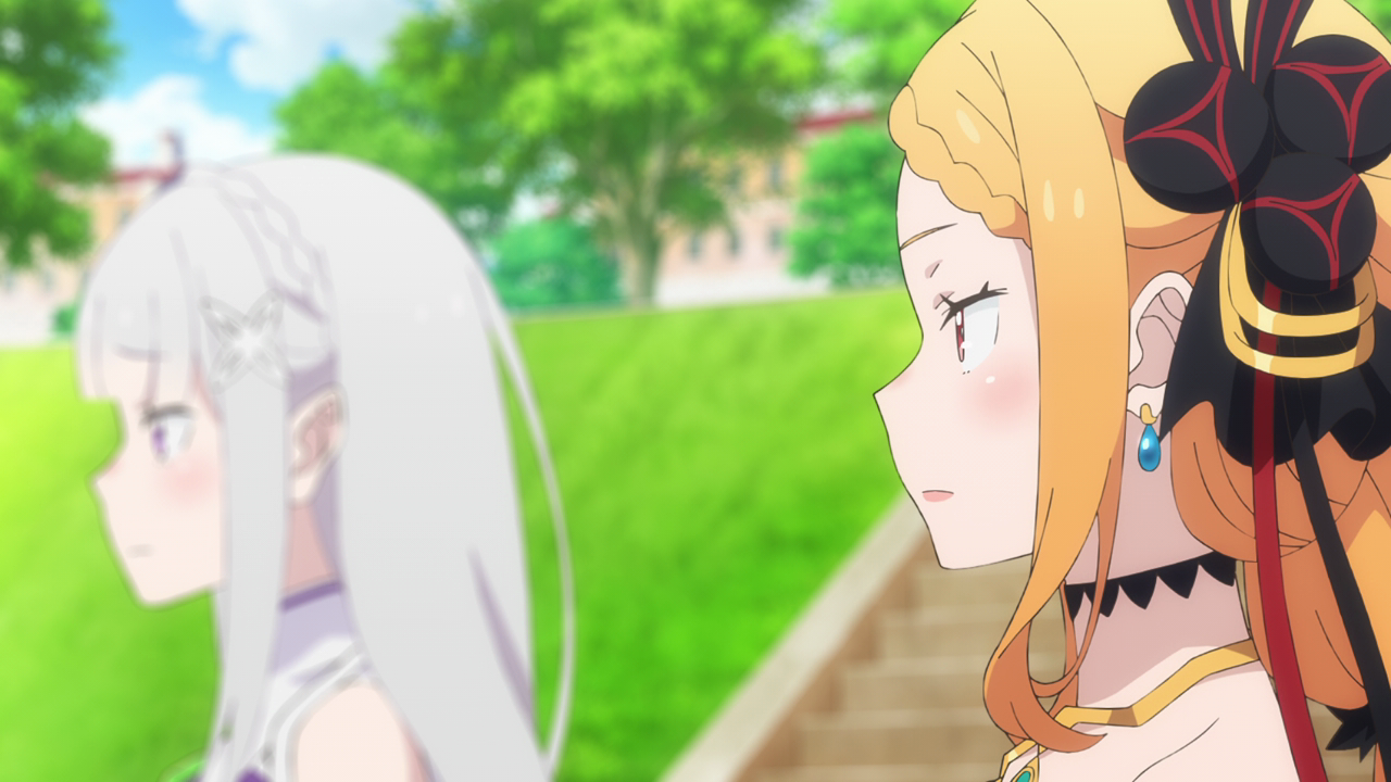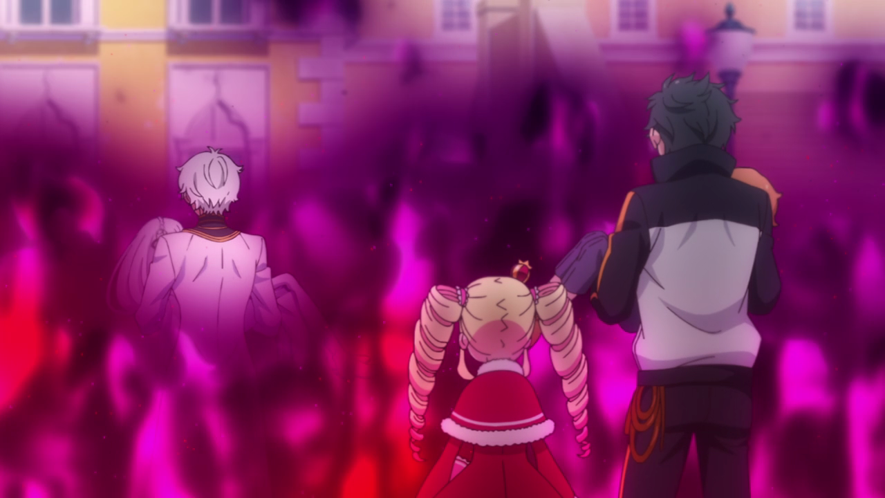 Fourth’s time the charm? In this case, things seemed to go so much better comparatively in regards to lives that were lost since by the end of it, technically no one died. But we’ll get to that. I really appreciate how much emphasis they put into teamwork and being able to be there for one another in this series. Things always go terribly wrong when Subaru goes at it alone, but with the support of others, things always seem to go better.  It’s so refreshing to see him be able to trust and open up to Beatrice with this issue. Especially since she’s able to deduce the situation and figure out a plan of action. I’d honestly trust Beatrice with my life. I really appreciate and respect that Emilia doesn’t want to be protected by others and wants to fight alongside Subaru and everyone else. Though I am actually quite surprised that Priscilla of all people actually told Emilia to go after him. There’s definitely more to her than what her usual actions typically say. But that’s probably a different discussion for a later time. I also really like that Emilia has come to be able to understand Subaru a lot more now as she is fully aware he’s just trying to protect her as he doesn’t want to see her hurt. I’ve always been a sucker for pairings that fight with and protect each other rather than one person doing the protecting. It puts them on a more equal footing that way and makes the relationship feel equal. And we have witnessed Emilia to be a very formidable fighter and boy did she GO OFF this episode. I’ve honestly forgot how good she can be even without Puck. Though I did laugh at how Emilia just shot first and asked questions later, not even giving Sirius the time of day to start her little performance speech.