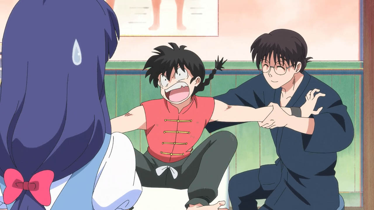 It was nice to see Ranma and Akane bonding more this week, and it was a nice treat to see Ranma’s sweeter side today. He’s not as much as a muscle-brain as one might be led to believe. He’s not dense enough to not notice that Akane has a crush on Dr. Tofu, and was quick to try encouraging her to take any opportunities to seeing him. Akane however wants to keep the fact she likes Dr. Tofu a secret, because she already knows her love is unrequited. Sadly, not only does he only see her as a child, but Dr. Tofu actually has feelings for her eldest sister Kasumi (who does not appear to be aware of this). This guy just becomes a complete mess around her, and cannot do his work straight, leading to many mistake. As result, he hasn’t exactly made any particularly favourable, much less professional impression on her, but I digress.