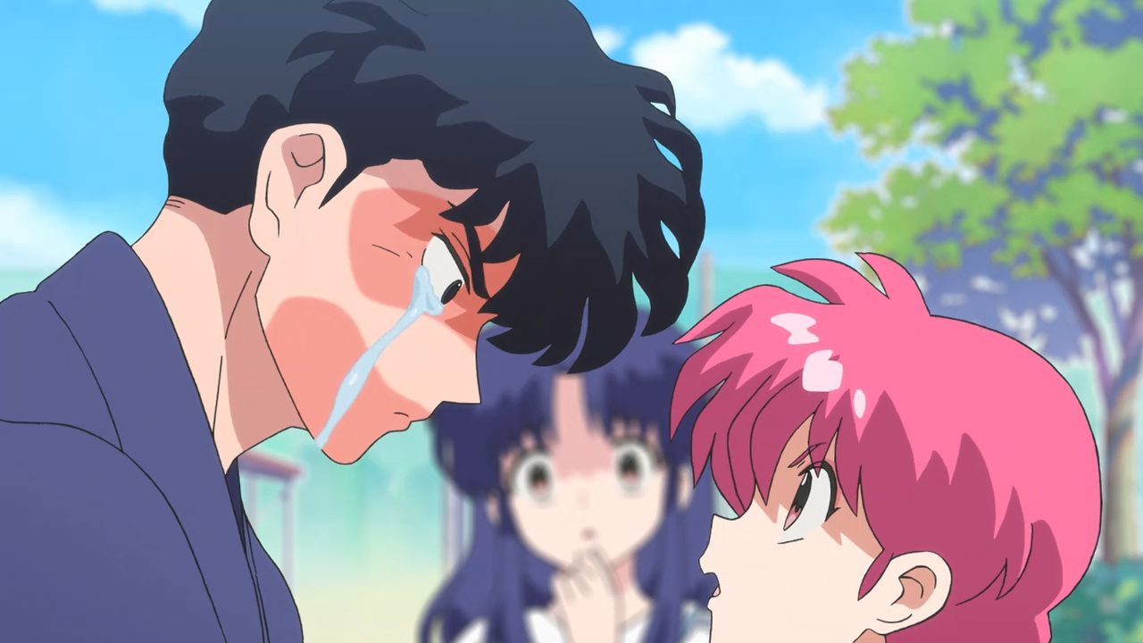 It was sweet to see Ranma paying close enough attention to Akane’s mood after she had told him about it. He even went far as trying to help her laugh and smile when he thought she might’ve been crying. Unfortunately for him though, while he had finally made one step forward, he took two steps back due to poor timing and his usual poorly timed quips. But we can definitely see he’s starting to see her cute side more too, as he caught himself blushing a bit when he has his eyes on her.