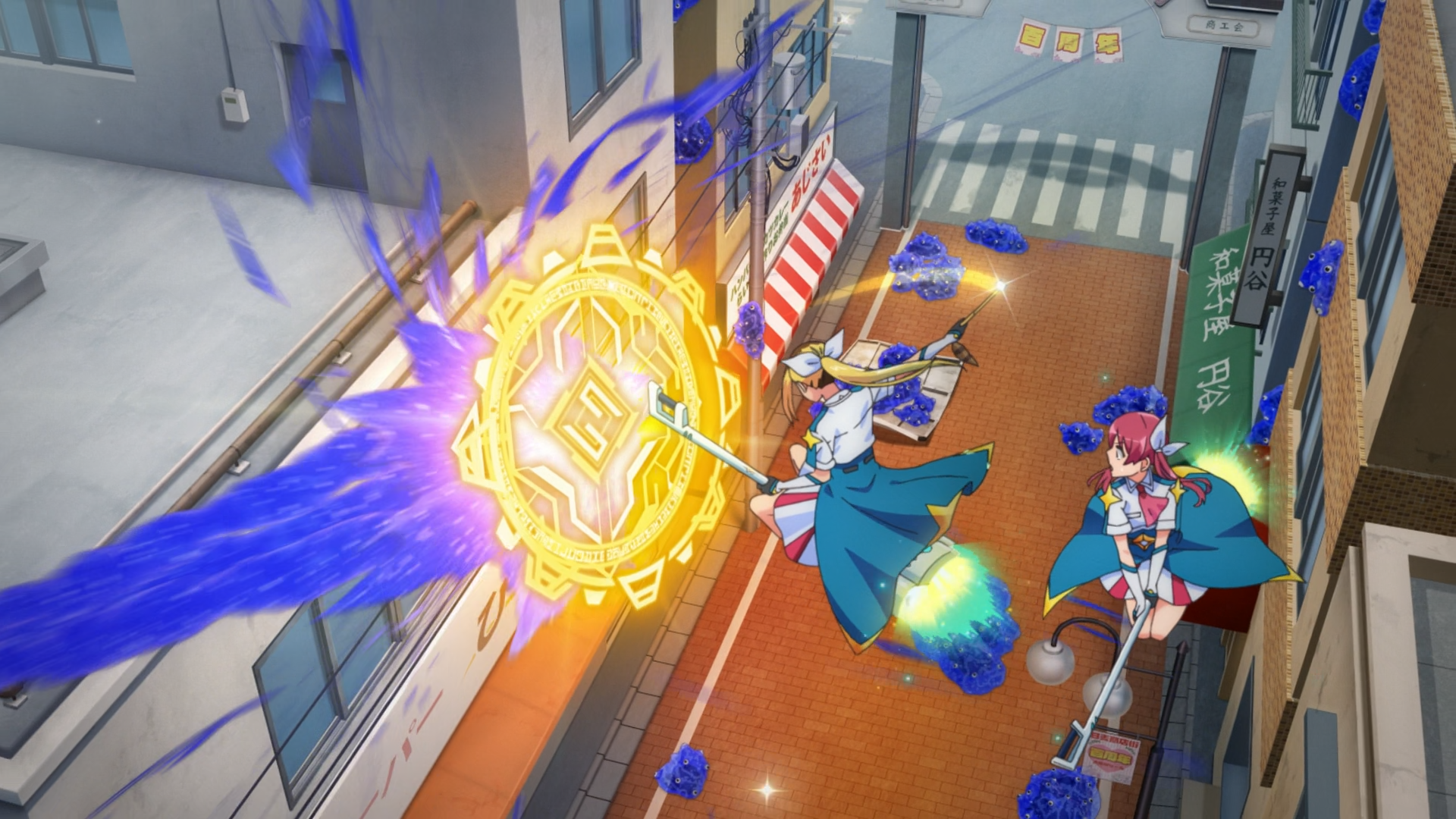 Fortunately it was probably for the best that she was not around when Magilumiere got the call to deal with a serious Kaii outbreak at an old shopping district. The problem was that existing spells in the books to deal with the Kaii spread would cause irreparable damage, and it’d essentially be wiped out. Kana didn’t fully understand that at first, which was why she was getting frustrated and confused as to why they wouldn’t use the most ‘practical’ spell in the book. Furthermore, she didn’t understand their aesthetic. It was only after Hitomi told her to survey the area that she finally understood wide-range spell was too powerful for the old buildings in the shopping district. They needed a different solution. The problem was the solution wasn’t something that existed in the manuals, so that left her to suggesting an alternative solution, which lead to Kazuo and Boss (who also turned out to be a magic engineer, and a brilliant one at that), to literally create a brand new spell from scratch to provide the solution to their problem (in 15 minutes no less!). That is their aesthetic. It’s not always about relying on the books. It’s important to go to the site and adapt accordingly to the environment. If a new spell needs to be crafted, that’s exactly what they’ll do to get the job done!