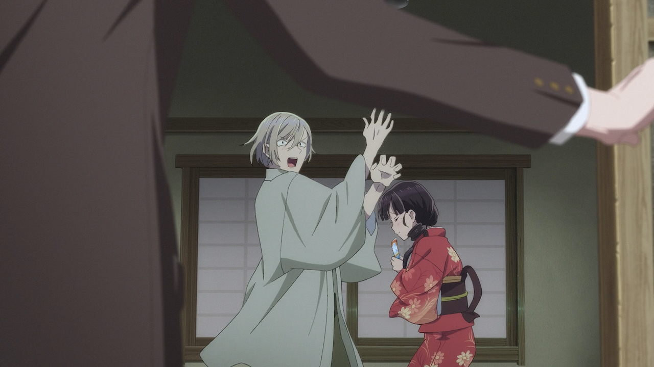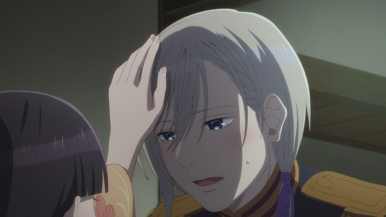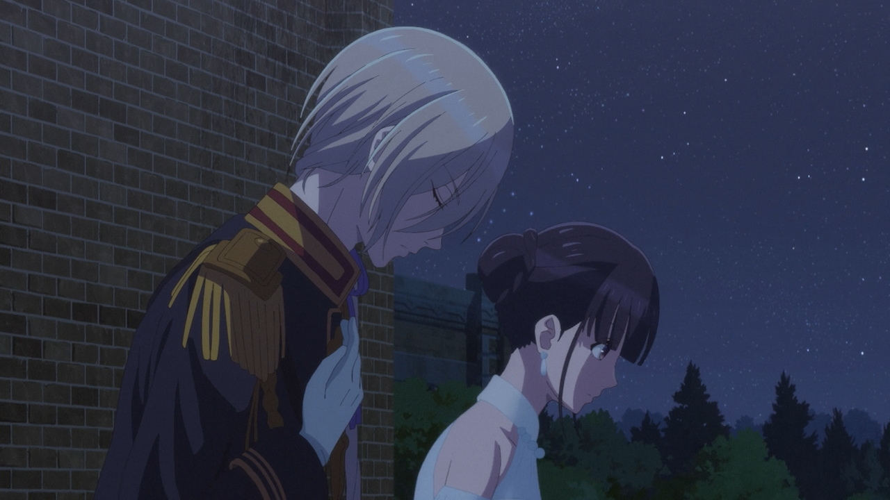 While the episode was fairly bare-boned, the ending made it all the more worthwhile wait though, as we were rewarded with Kiyoka and Miyo being so freaking cute with each other. First when the two are leaning in for a kiss, they get interrupted by Arata– who was there to pitch the idea of serving as Miyo’s bodyguard. It’s actually hilarious how grumpy Kiyoka is around Arata (understandably so, but it’s always fun to see his feathers as ruffled as they are). The icing on the cake though was Miyo deciding to give Kiyoka an ADORABLE headpat– it’s so pure I’m dying from diabetes it’s giving me. And to match that with a cherry on top, Kiyoka gives Miyo a forehead kiss in return. It’s these little bits of crumbs are what helps us get through waiting for their real first kiss. The sweetness overload is real!