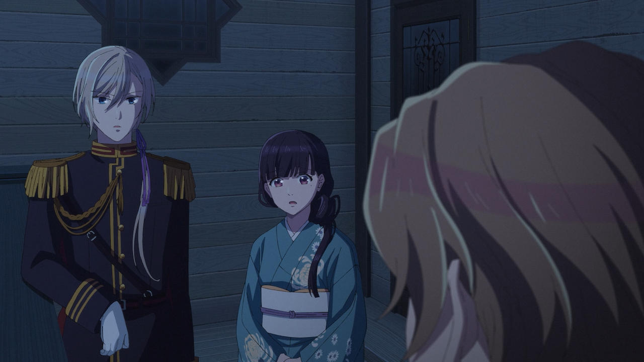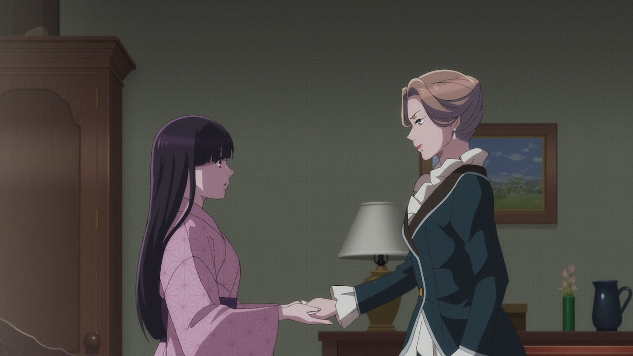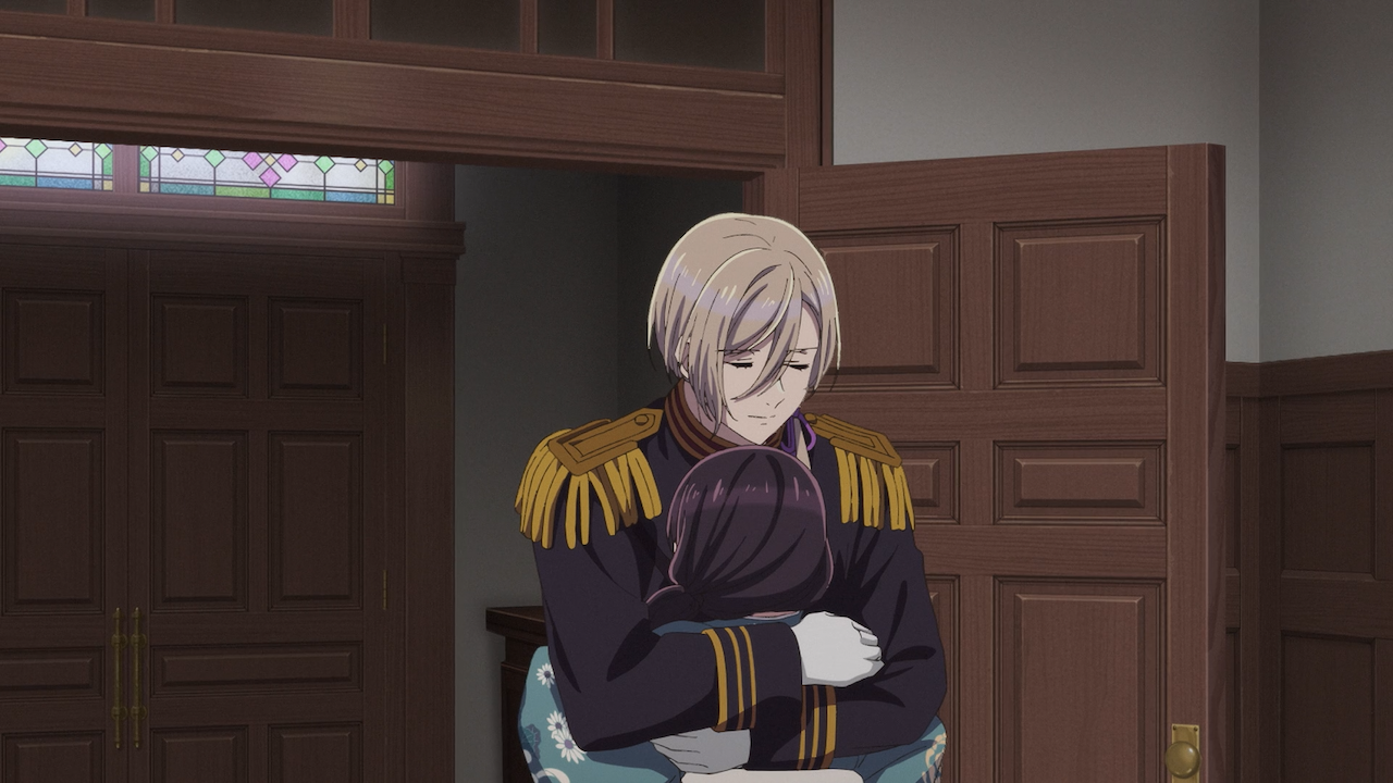 Now that Fuyu has seen and recognized Miyo’s resolve, she’s softened to an extent that she’s become a tsundere. She’s still saying stupid things, but ultimately Miyo got the recognition that she’s capable of fulfilling her duties as Kiyoka’s wife. It was sort of funny how she just slapped that ribbon into her hands because she didn’t know what to do with herself. It’s a shame they left out the scene where Miyo puts on the ribbon and Fuyu’s reaction. It was also nice to see her speaking to Kiyoka without angry tension sizzling between the two of them. She simply said she hopes the next time she sees Miyo, that she’ll be more confident, acknowledging that she accepts the two of them being together. (Also, how could she not after seeing the two hug the way they did when Kiyoka got back?)