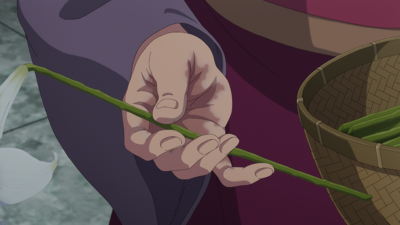 But what made this mushroom so important was tied it was multiple cases. One of which, was one said to be responsible for the death of Concubine Jin. However the symptoms said to be the cause of death did not match what Maomao knew about it. So it was falsely framed that way to cover up what was likely actually a murder covered up as suicide. The main clues pointing to this are the fact the corpse only had the scarring rashes on her face, all-while her hands were spotless– indicating that she did not use it on herself, but rather someone rubbed it onto her face after the fact. And we did see the lady-in-waiting who was handing out the lilies have the matching scar on her hands.