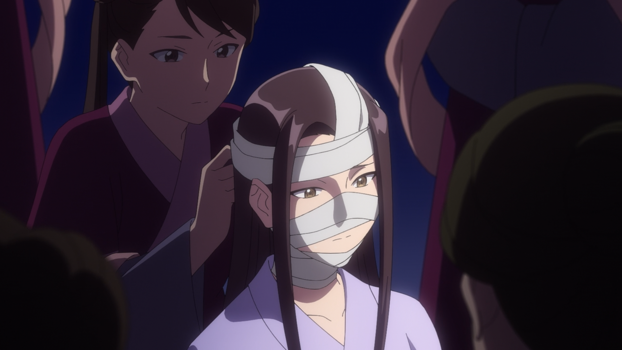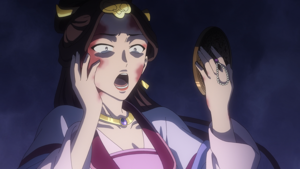 Jinshi had been quietly investigating a case relating to Concubine Jin, who was reported dead at the end of last week’s episode. The woman was described to be in one word: Nasty. Her unchecked jealousy of those who successfully curried favour of the Emperor was not one to be taken lightly. The torment she’d lash onto people ranged from verbal abuse, to physically assaulting them and of course, poisoning them (including Lady Gyokuyou while she was pregnant with her daughter). The most notorious case was with the very rare and dangerous mushroom. Ingestion of only a piece is enough to guarantee to kill, and touching it causes an awful scarring rash and other harm to the bodies (such as loss of hair). Maomao had encountered one in the past, and despite having washed it off immediately the scar remained. And we saw how one of the concubines (Lady Son) who had been attacked by Concubine Jin such manner bearing a very awful grudge, relishing the fact she was finally dead during her funeral.