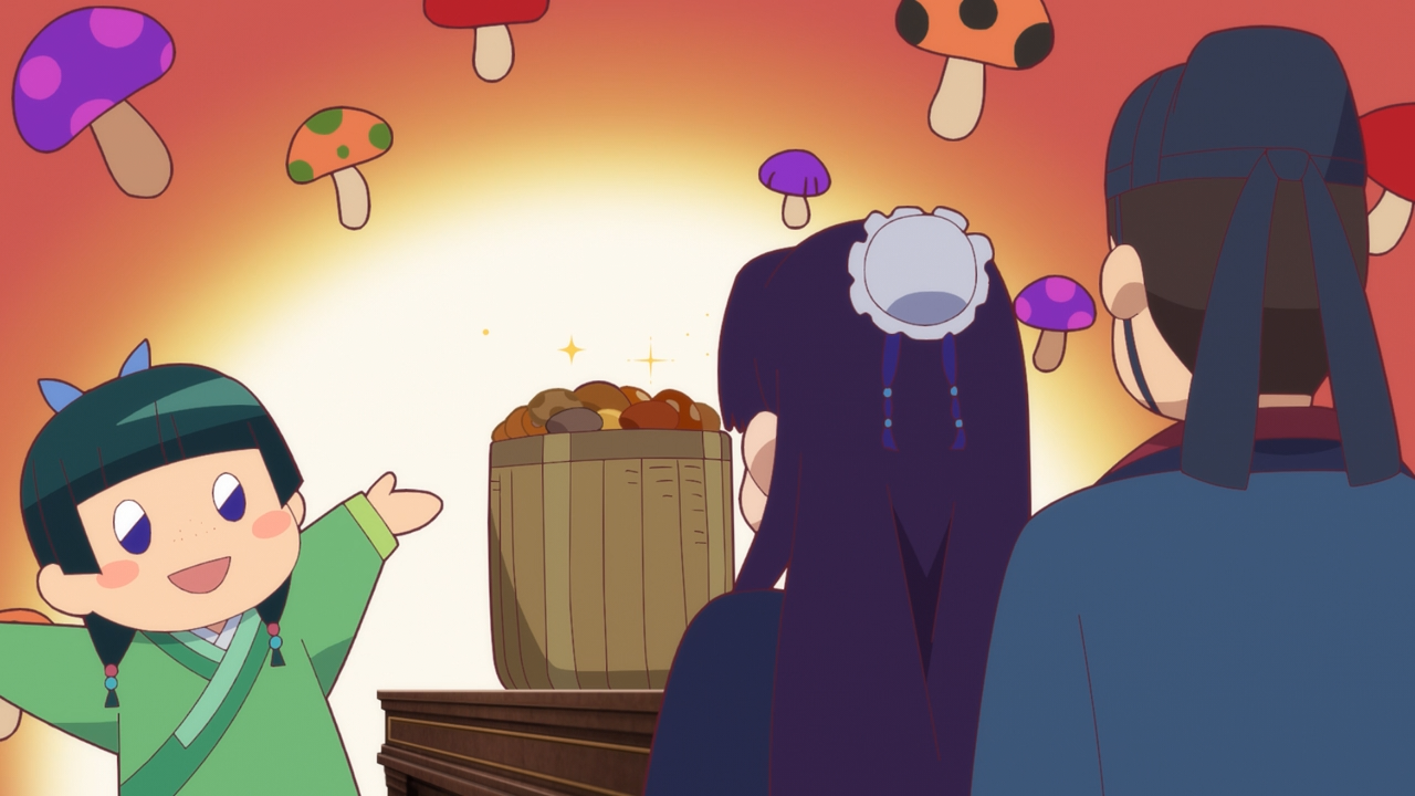 Unfortunately for Maomao, all the mushrooms she had so excitedly foraged for her own use has been confiscated whens he slipped up and gave too much information about them growing on carcasses. had she left them out, Jinshi probably would’ve been more open to letting her keep them. Hahaha…