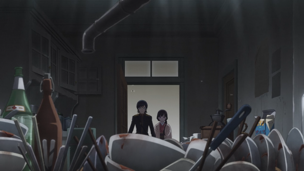 By the end of the episode, Miyo decides rather than sit around doing nothing, she’d rather clean up that doomed kitchen as her way to helping out in some way. No surprise considering that is kind of her comfort zone given she’s very good at it.