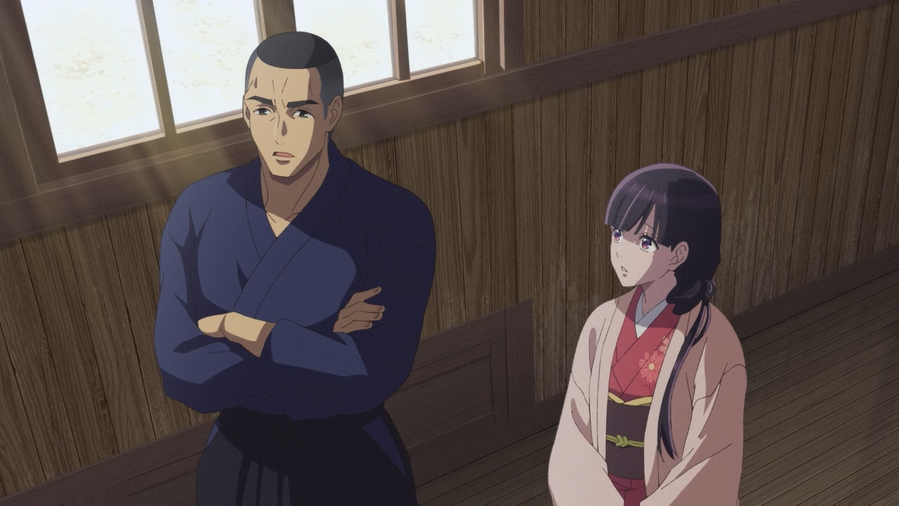And finally, my last gripe with the episode was how they did a poor job of highlighting the atmosphere of Kaoruko and Miyo “not fitting in”. They stopped by many places, but the only time we only really saw and felt that was when they visited and Dojo and Kaoruko’s peers were saying stupid shit about how “women should be doing this and that”, and Mukadeyama was going on about Kaoruko never being able to rise up the ranks while at the same time putting her down. Honestly I’m surprised they fell short on this considering we’ve seen them deliver tense atmospheres before.
