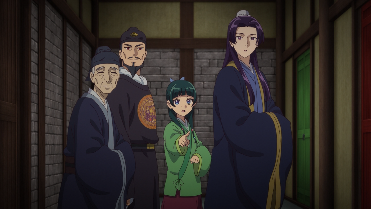 The late emperor’s building is scheduled to be torn down soon, so Empress Anshi has sought out Maomao in hopes to resolve a concern that’s been pressing her: the late emperor’s body has yet to decay. So it’s time for Maomao to solve the case!