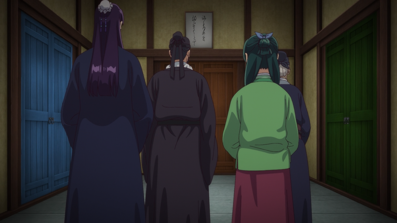Maomao and Jinshi were invited to join the emperor to go through the Shrine of Choosing that had been around since the founding of the nation. The challenge was straight forward, pick a door of color and try to make it to the end where it’d declare one to be the rightful heir.