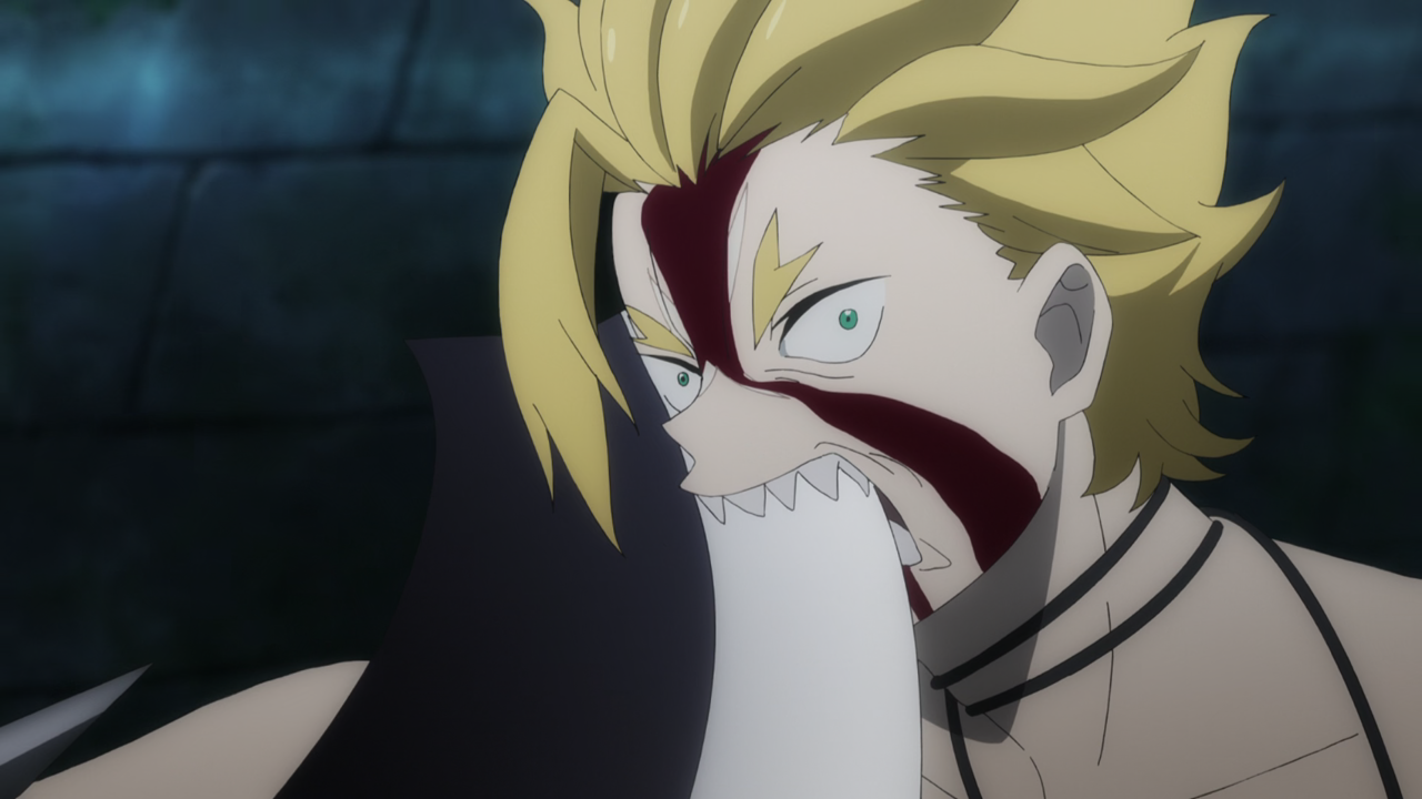 I agree the last part fight was directed poorly. During the fight, Garfiel uses mana flow, much like Gaston did earlier, to launch himself to the ceiling while using earth pillars to block Kurgan’s arms, and after doing so, he ruined Kurgan’s left eye in exchange for a slice to his abdomen. Then the strange directing began, and Garfiel rushed up towards Kurgan using earth pillars to block his arms, and he used all his strength to destroy two of Kurgan’s Devil Cleavers with blunt force in exchange for breaking both his arms. Kurgan thought he was gonna finish Garfiel, but he didn’t notice that one of his left arms wasn’t working well due to the scratch Garg had given him earlier in the sewers since he can’t feel pain as a corpse soldier. Garfiel used mana flow again to launch himself to the ceiling and used the earth pillars to block Kurgan’s arms and dive down to bite through Kurgan’s carotid artery by attacking Kurgan from his left due to his eye being disabled, which was difficult to see, and I had watch more than once with no understanding until I saw a piece of his neck gone after the fight had concluded.