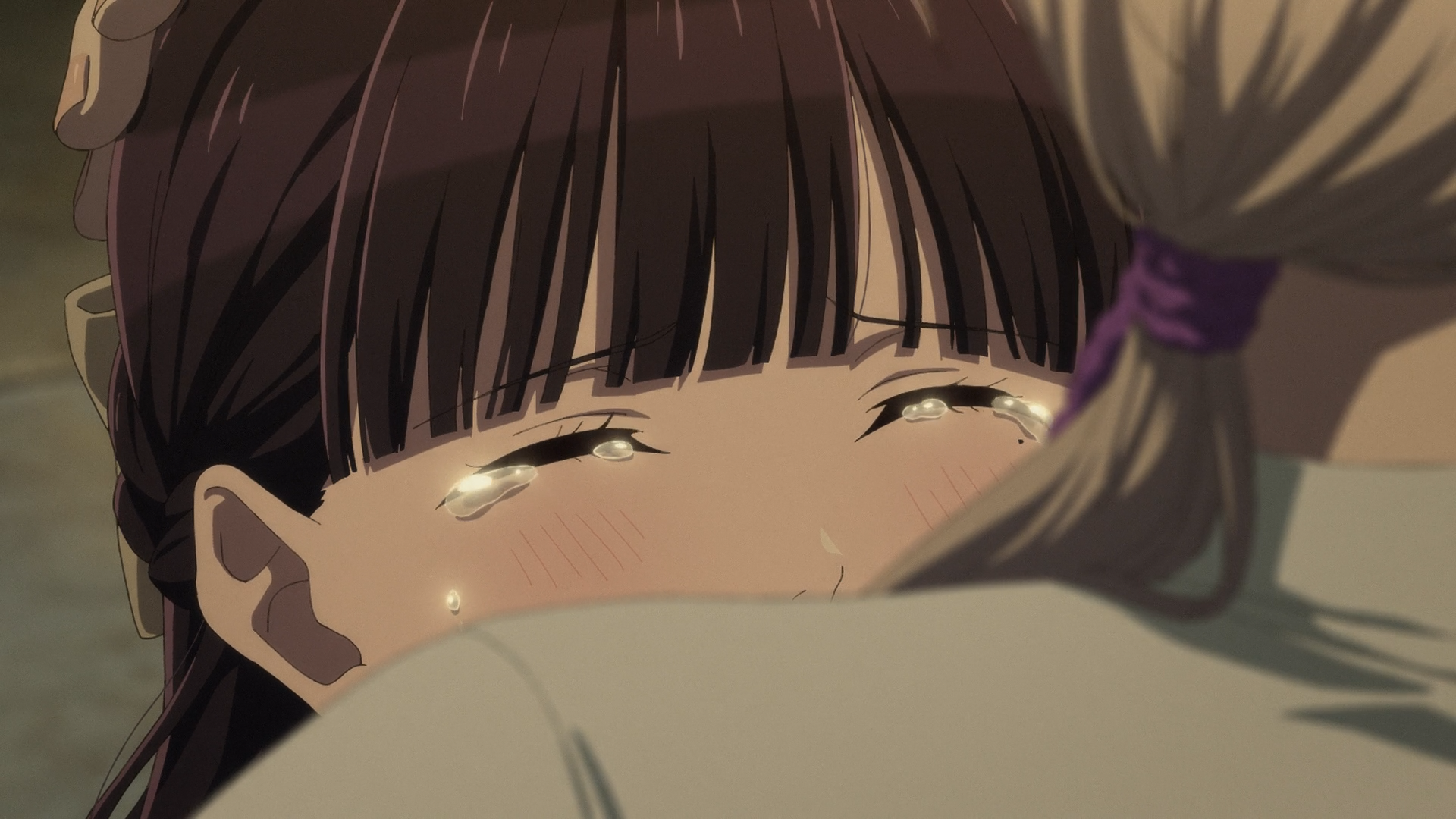 I consider these moments crucial to properly explaining why Miyo was hesitating so much to begin with. It wasn’t as simple as insecurity due to the lack of confidence, but rather the trauma that she had been subjected to all her life. By cutting this out, I felt like they completely overlooked how big of a deal it was for Miyo to overcome this fear of her deeply rooted by trauma. As a reader of the novels, I always appreciated the attention to detail of both Miyo’s struggle and growth of overcoming her traumatic past and abuse from the Saimori family. It made the awakening of her powers and newfound assertiveness feel that much more rewarding, and made it more emotionally invested as well. That’s why it frustrated me to see them cut this scene out. I was really hoping that we’d at least get an internal monologue to fill it in somehow, but we never did. So it’s certainly an understatement to say they really only scratched the surface of of Miyo’s fears about love changing her.