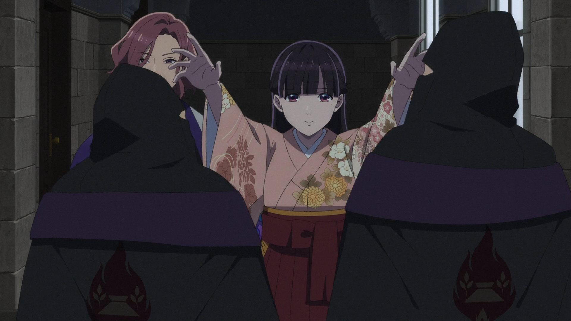 Once Miyo’s powers had awakened, we finally got to see what she’s truly capable of. As expected, her powers aren’t flashy, but man they really do wonders. The way she was actually able to foresee exactly where she needed to go, and who she needed to met to accomplish her goals is nothing short of amazing. That was how she was able to track down Kiyoka’s parents (where she and Fuyu had a nice heart-to-heart conversation for an exchange), Godou and Kazushi for their assistance in breaking Kiyoka free. It was also really awesome to see her to see her put the Gifted Communion guards asleep, best of all Kiyo’s just watching absolutely stunned to see this new side of her! Look at her go! Unfortunately for the guards, they were not blessed with pleasant dreams, but uh… quite a nightmare that’ll keep them quite disturbed for a while. (Man the Saimori’s really dodged the bullet of Miyo having a gentle nature and her powers not awakening till wayyyy later… Things could’ve turned out verrryyy differently.)