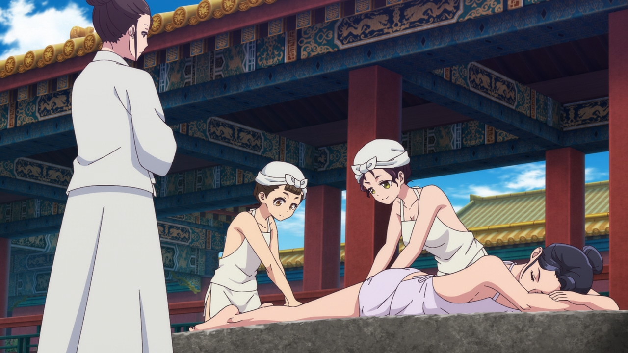 The method is simple, offer services like massage and body treatment, and try to form a good relationship with the courtesans. So that when it’s time to go, they may have the opportunity to be hired to work for their families once they leave the Rear Palace. You could say Maomao was having more fun than she cared to admit, especially since she saw an opportunity to give a quality hair removal treatment.
