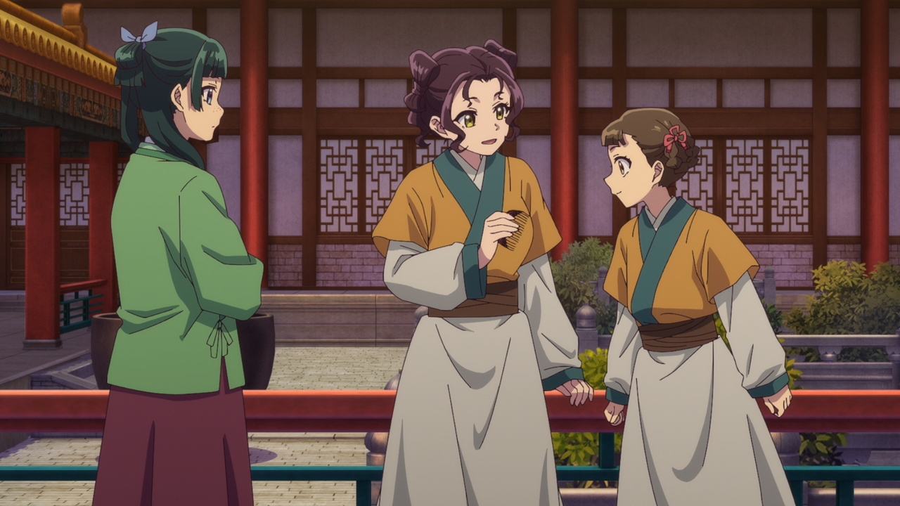 But there was one big thing that did change between them: Jinshi has started to referred to Maomao by her name for the first time in Episode 13. The shift was drastic enough for Gyokuyou and Gaoshun to have noticed– especially since he’s been hesitant to do so all this time.