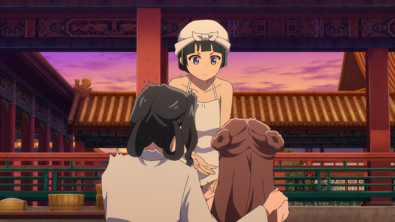 Of course once that was all said and done, hilariously they did have leftovers so they were able to actually treat themselves to some— with Shisui because this girl just loves popping out of nowhere and slacking off on the job. But seeing her and Xiaolan being all happy and friendly is something precious to Maomao. Usually she’d want to keep her head down, but as she said to Jinshi, she wouldn’t be able to sleep at night if she left Xiaolan alone to fend for herself.