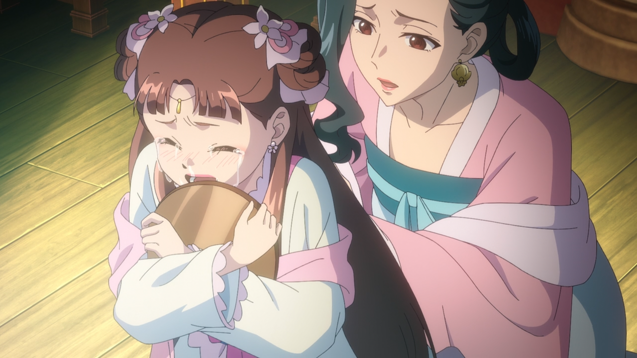 The copper mirror, unbeknownst to Lishu was actually what you call a ‘magic mirror’. Its purpose is to capture light to project an image in its reflection. In this case, the image projected was Lishu’s mother’s face. While Maomao had explained how it worked, all of that flew right over Lishu’s head, because she was so overwhelmed by the shit she’s been subjected to all this time, that she has immediately defaulted into blaming herself. I actually teared up when Lishu broke down, apologizing to her mother’s spirit for not using her mirror more since she had received the glass mirror from the envoys. For the love of god, someone help this girl! It was just such a heartbreaking scene to watch.