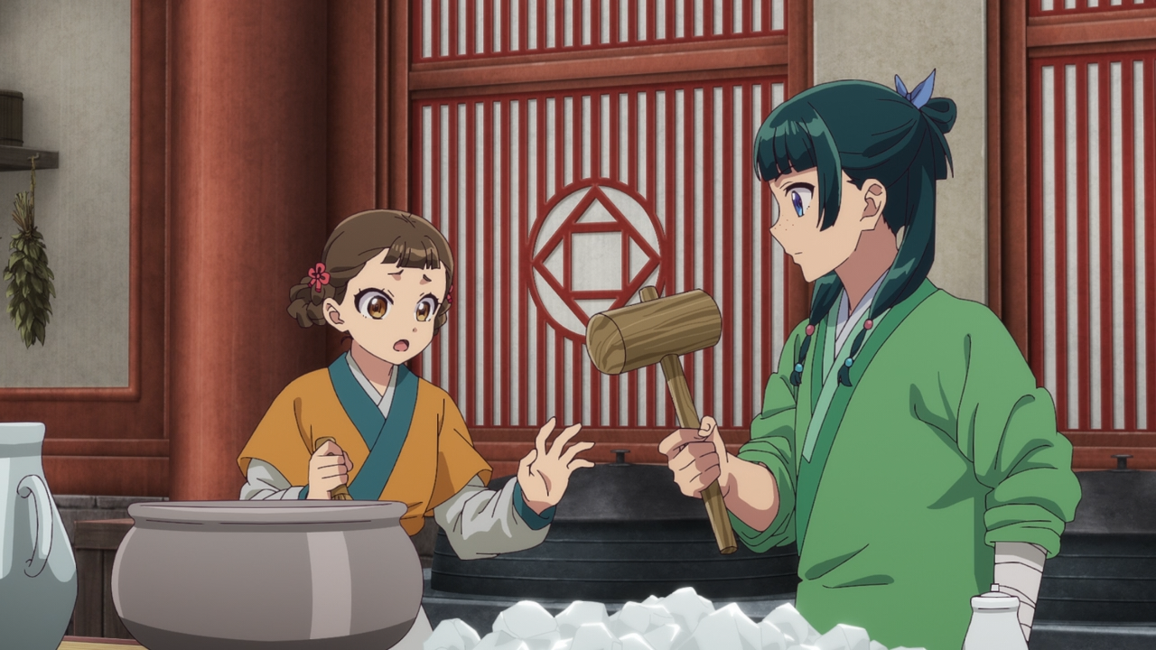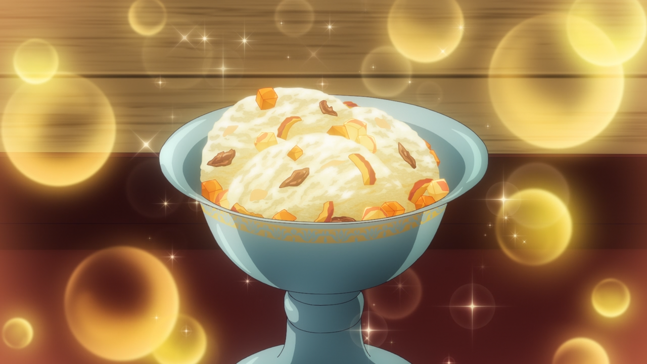Next up we circled back a bit to Xiaolan’s progress she has been making, which is nice to see since it won’t be long before she departs. Fortunately She has been able to gain favour with a low ranking consort who will be leaving soon, as she received her hair pin (which is always a positive sign of favour). But her joy was short-lived when she made a grave error of accidentally walking into an eunuch delivering a very expensive block of ice and spoiling it. Had Maomao not been, nor Jinshi was close by to provide the resources they needed to turn this around, this could’ve gone very badly for Xiaolan. The problem for Maomao was that the delivery was for Lady Loulan, and right now she’s the only one of the four high consorts that Maomao has no relationship with. So it wasn’t like she could curry their favour thanks to her history and relationship with them. The only way to turn this around was to make something better out of that spoiled block of ice, and that was a delicious ice treat.