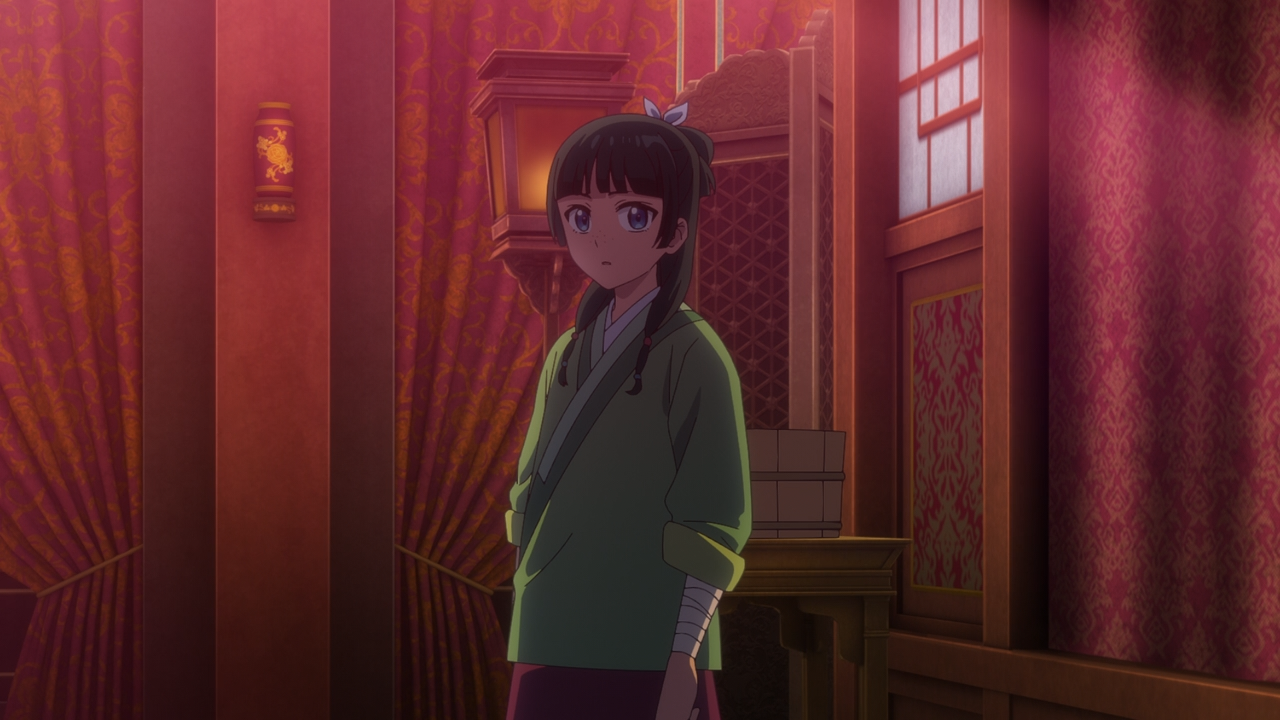To Lady Gyokuyou’s credit, besides the fact she does trust Maomao, she knows above all, that the ‘crimes’ that had been recorded under the late Empress Dowager is one to take with a grain of salt. On the records, the ‘crime’ which Luomen had supposedly committed was left vague and unclear. The only thing that is known is that it’s related to Ah-Oh’s birth, which happened at the same time as the current Empress Dowager Anshi. So Gyokuyou isn’t going to let something as ambiguous as that to stop her from seeking care under the best doctor in the entire nation.