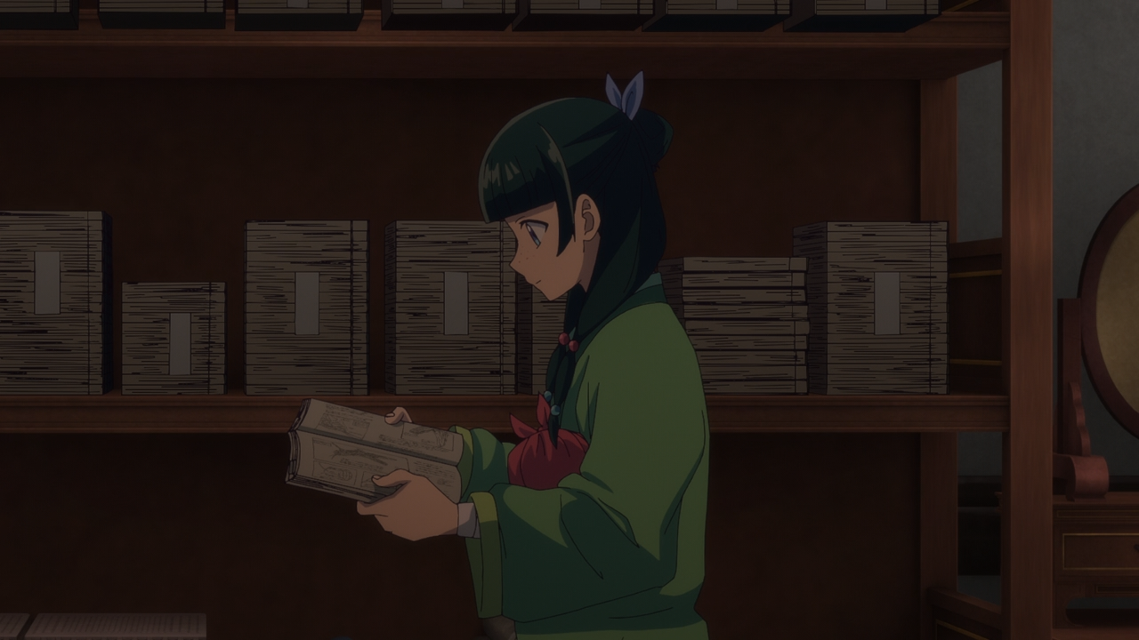 It’s finally happening~ all of the little mysteries building up to this moment has been pieced together! Maomao seems to have figured out where the source of knowledge regarding the all these dangerous substances for pregnancies been coming from.
