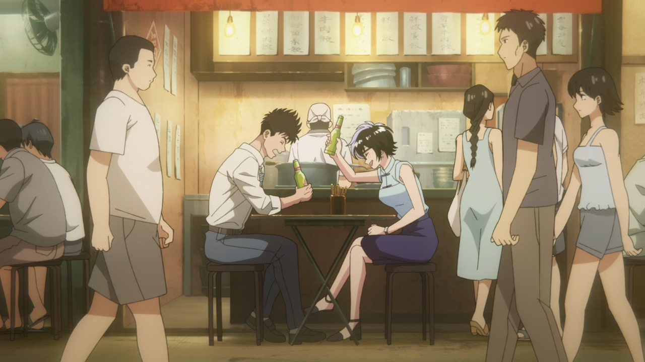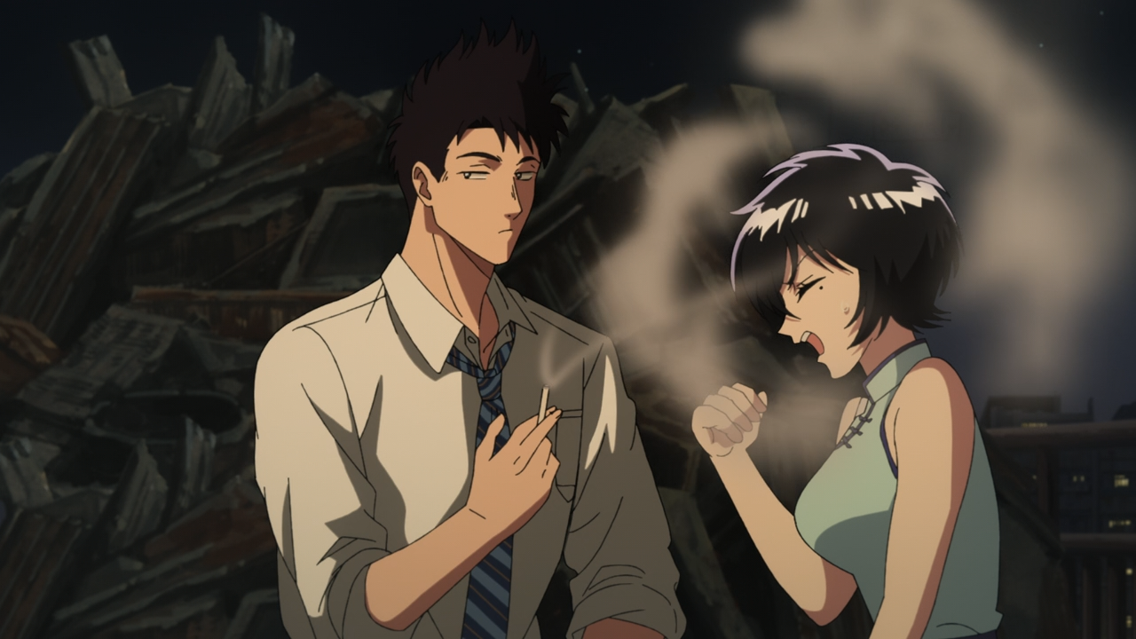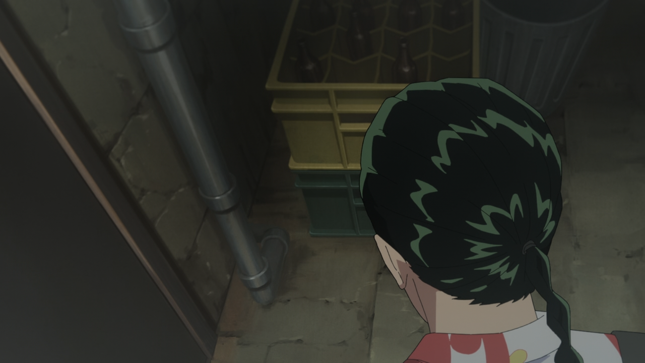 I’m struck by Reiko pointing out that it’s as if she was created to match the life of Kujirai B. Episode 4 had Kujirai B say in a flashback that people always want to go back to the nostalgia, which is why you can’t erase Kowloon, and this could tie into the Branch Manager words about the population being constant, and the true nature of Kowloon Generic Romance’s world could have to do with nostalgia itself, which I speculate to possibly be Kudo’s nostalgia for the past given we have multiple versions of the same person with a Gwen that knows that Kujirai B died and one that didn’t know and why the world’s so Reiko-centric given we know Kujirai B was Kudo’s former lover. The reason the Second Kowloon Walled City always has the same number of people is possibly ’cause it contains all the people Kudo knew during a specific time period there, and the world’s molded by that preference.