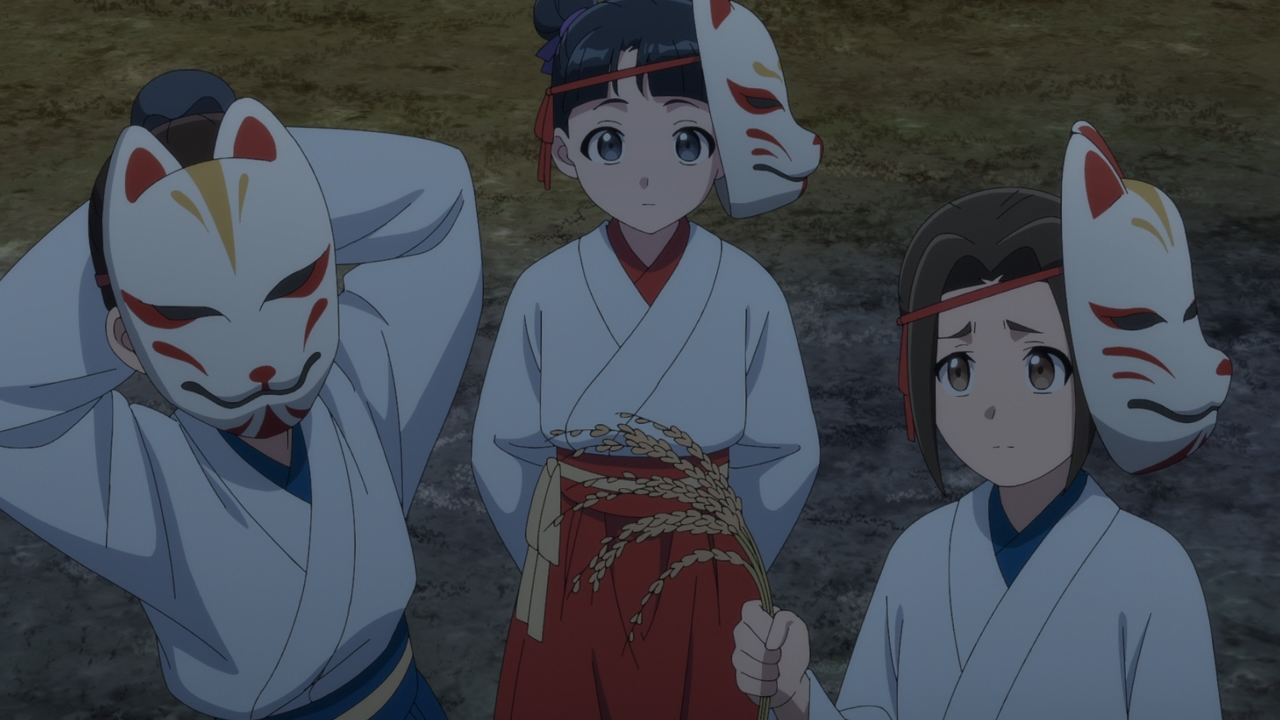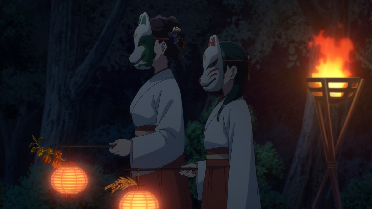 This circles back to a lot of the things Maomao came to learn about the village’s history in this episode. Shisui talked about how the tradition of praying to the Fox God of Harvest carried on forward from the few of the remaining local inhabitants of the area after they had been chased out by foreigners from the West. While they gained invaluable knowledge in bettering their fields, as more and more people invaded their territory to steal their resources, the villagers were pushed deeper and deeper into the forest– to where they are now.