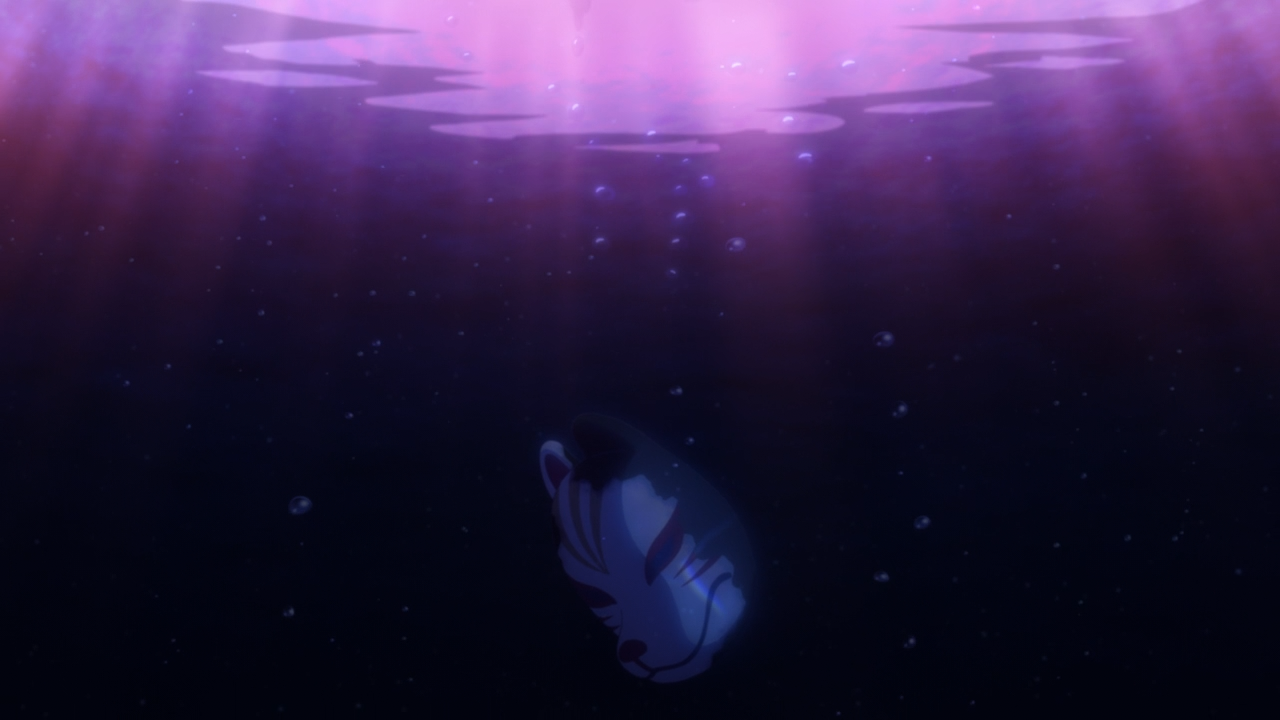 The last thing I do want to touch on is how precious little Kyo-u is. He’s a such cheeky little brat, but you can’t help but like the kid for his good nature and adventurous spirit. I felt sad for him when he saw what he thought may have been his mask fall into the lake because he had earnestly hoped his wish would come true. Wishes written on the back of the masks will only come true if they are fully burned, the others that fall into the lake will sink to the bottom to feed the harvest. But he’s lack of caution is coming back to bite him, tenfold by having been caught by the worst possible person: Lady Shenmei….