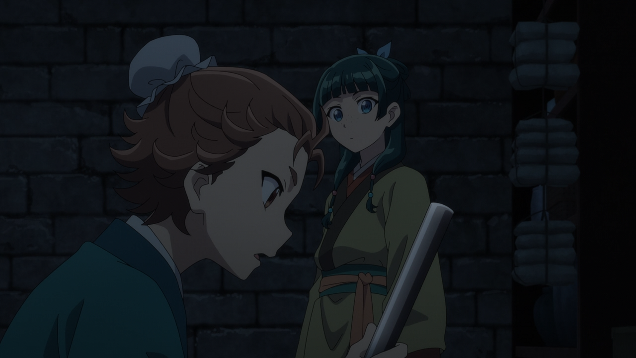 Up until now, Maomao had no clue why they decided to take her as a hostage, and yet at the same time, have given her enough freedom to be thought of anything otherwise. But it’s clear now that at least Shisui and Suirei were probably trying to protect Maomao by keeping her off of Shenmei’s radar– and seemingly for a good reason too. Lady Shenmei is straight-up terrifying. You can see the evil is just oozing all over her ghastly face.