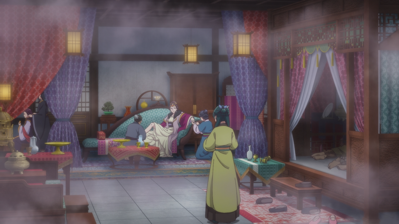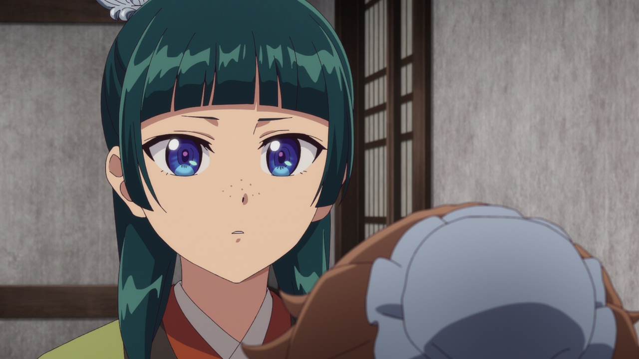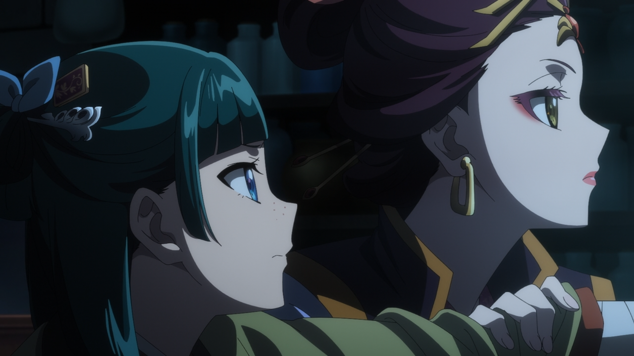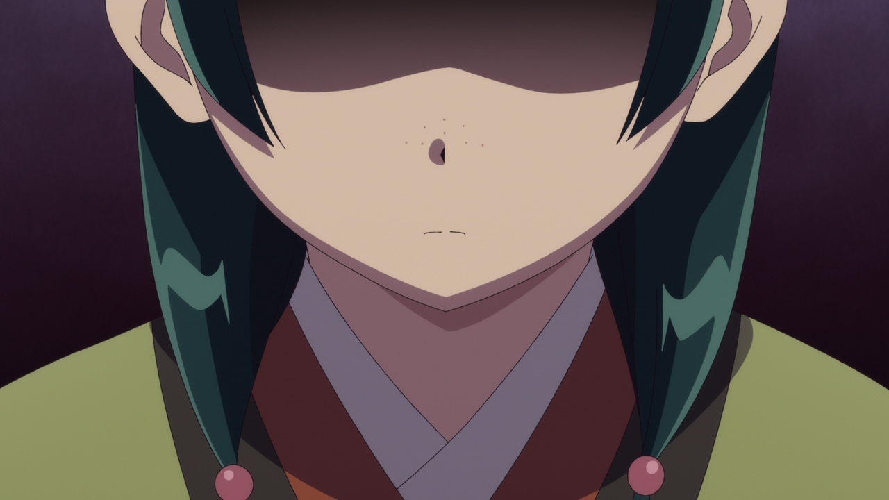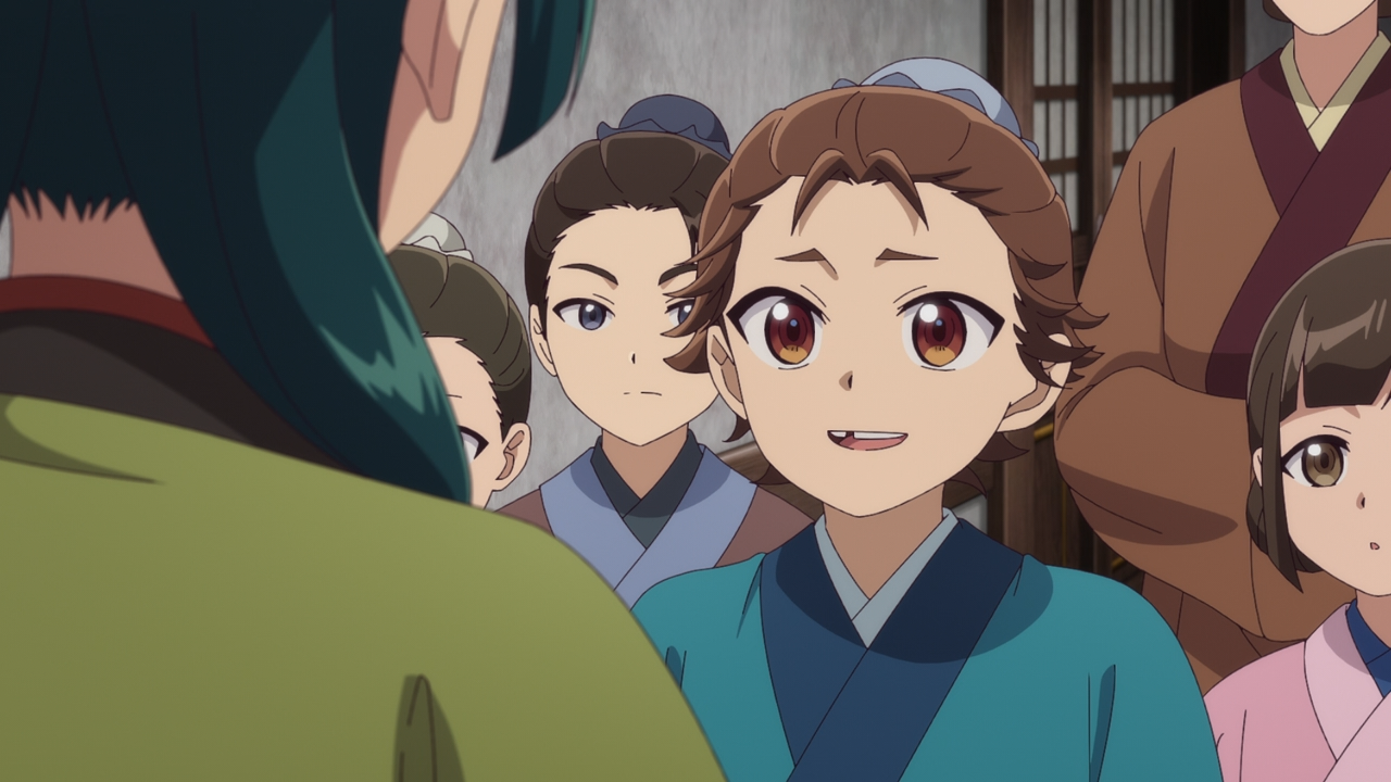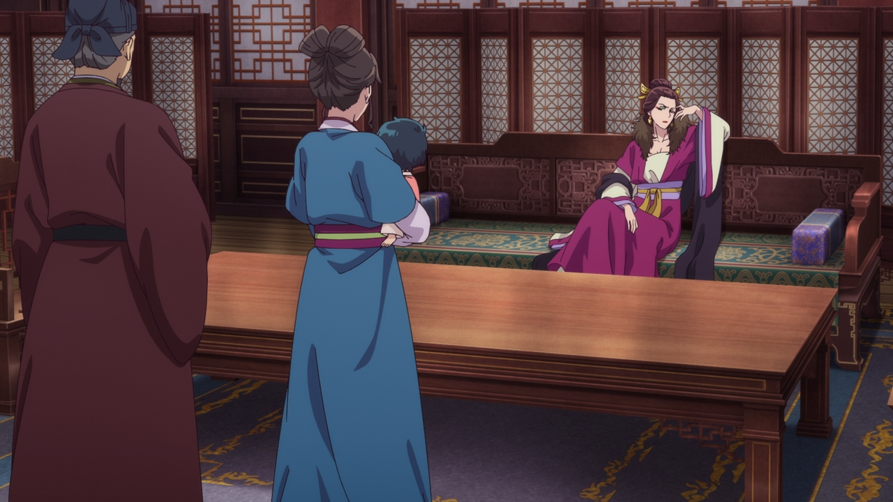 Unfortunately that isn’t the only pressing concern Maomao has to deal with. Now she knows the extent of just how bad things are. The Shi Clan is ready to start a war with the Emperor, and Maomao’s absolutely dreading the consequences that befalls the innocents who’ve been left in the dark. When a clan betrays the Emperor, nobody is spared, including the children. It’s difficult for Maomao to try and disconnect herself from them when she can hear them running around laughing, oblivious to the darker things the adults are organizing. Even more so when she’s grown a soft spot for Kyou-u. She pities the child, especially after seeing what the adults (his mother included) has been up to, all while he and the children are being told they are too busy because of work. She genuinely didn’t know what to say, but was able to safely work her way out of it by the legitimate reason of ‘she doesn’t know what she looks like so she couldn’t say’. Needless to say, this whole situation is just awful and unfortunately they are ticking down to a tragedy just waiting to happen. And sadly, this just makes the weight to what Loulan said last week during the festival. ‘It makes a for a good memory’, ‘insects never survive the winter, only leaving behind their children’, even heavier. Oof, it breaks my heart.