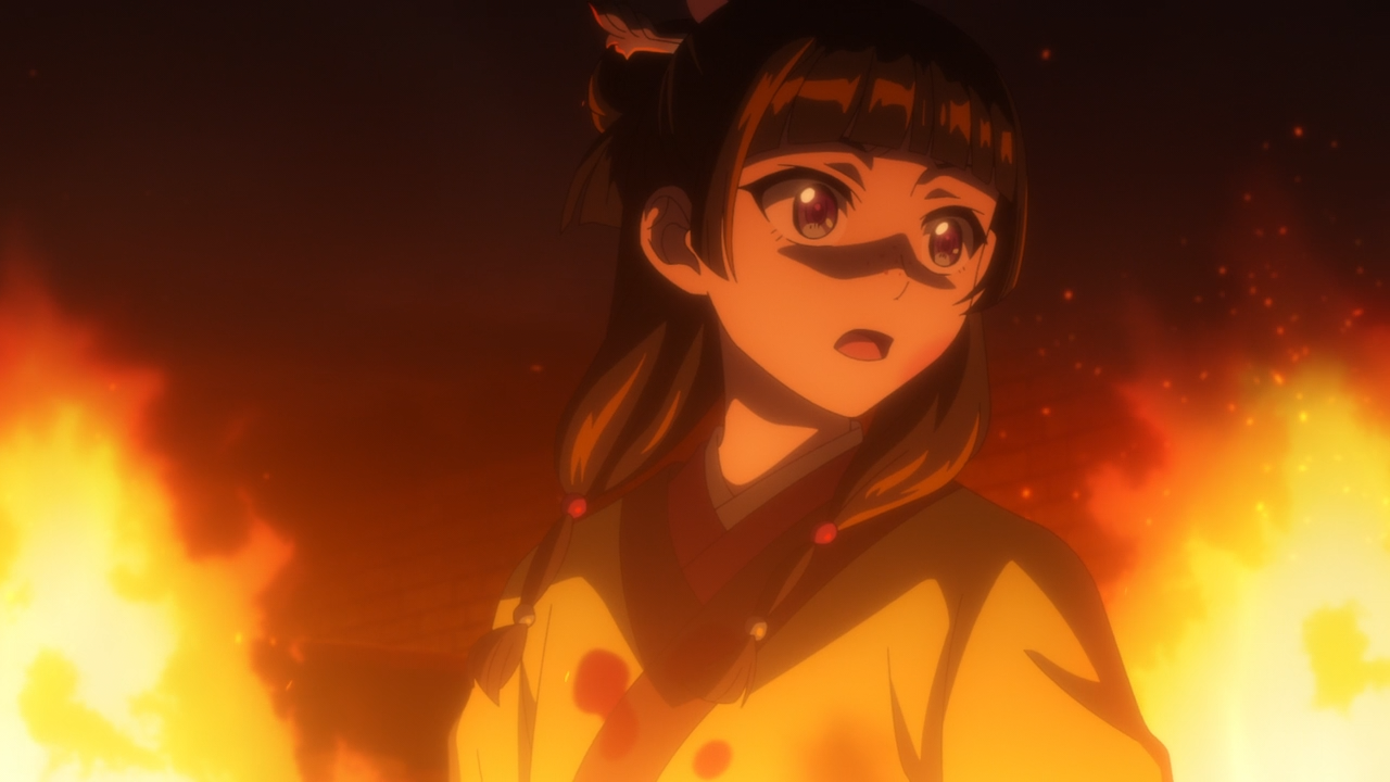But not only did Shisui seek to save the children from a worse and tragic fate, but did she also seek to save the people working in the workshops producing the weapons. She threw them money and ordered them to flee, and then proceeded to blow everything up. Both she and Maomao (who had been investigating the workshop after being released by the guard) had almost gotten totally caught up in it. Chances are it probably would’ve been pretty dangerous for Maomao too had she still been in the room considering she noted how she appeared to be working on the floor above it, or at least close to it.