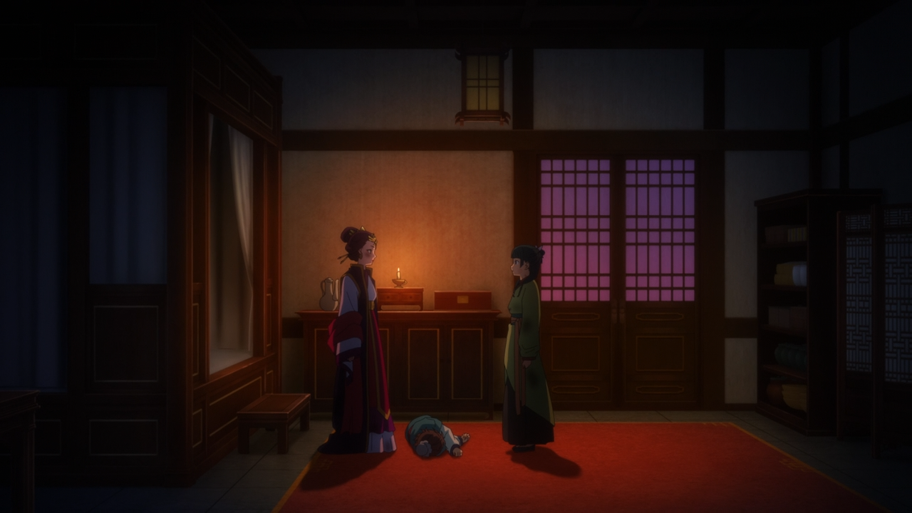 We’ve reached the climax of the arc, and all the answers to the mysteries building up to this point are finally revealing themselves… From the Founding Mother’s heritable colourblindness (from Shishou’s side), to the story behind exiled consort, Suirei’s true bloodline and the Shi’s clan fall from grace. Needless to say, this was a heavy episode, and especially tragic considering the consequences that befalls many young and innocent souls that are being dragged into this mess.