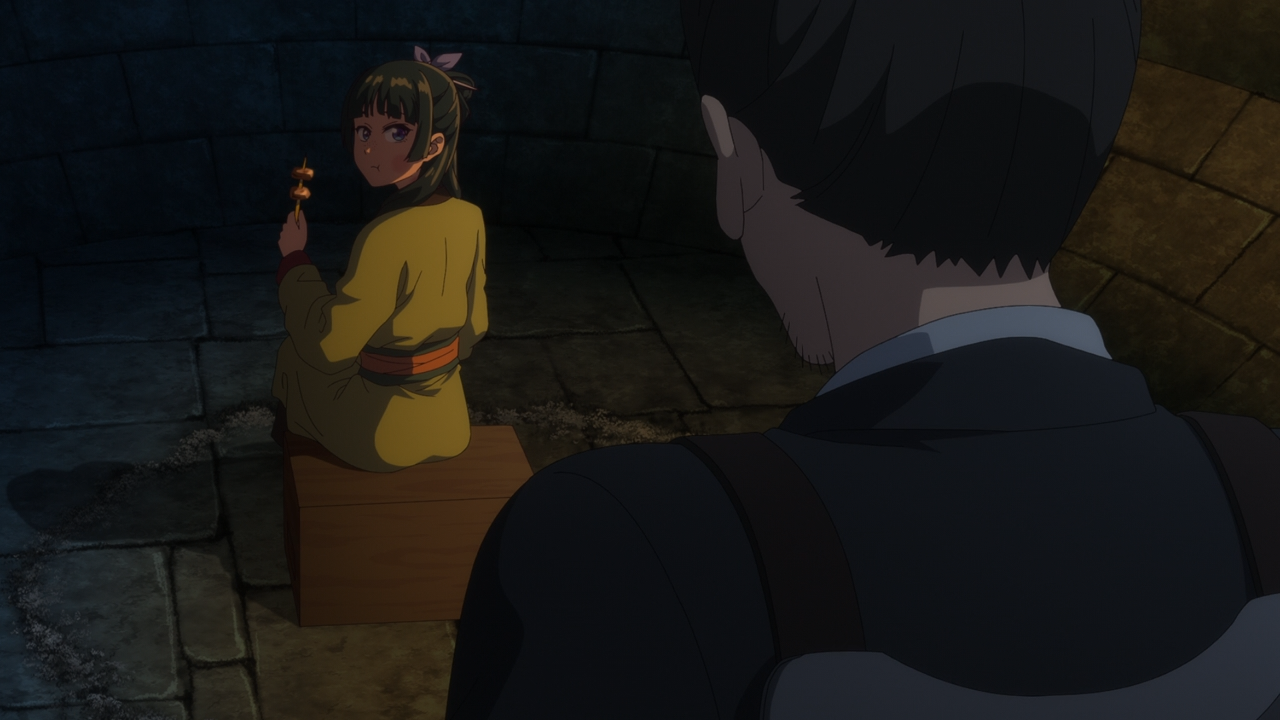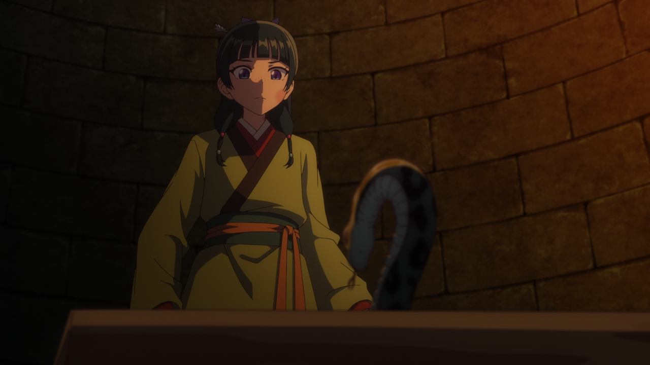 Thankfully Shisui managed to make it on time to spare Maomao from being cast into the water chamber. Shisui knew Maomao would be just fine if she had to face a Taibon, and sure enough, she was right. While most would understandably fear the capital punishment created by the mad king from ancient times (just like how Suirei been traumatized by it), not Maomao. Instead this was more like a treat. Maomao wasn’t afraid of the venomous snakes and insects that came crawling out, no- it was the other-way around, she hunted them, and with the hair pins no less. The end result: Maomao eating what’s edible of them for a tasty snack, by using Jinshi’s hair pin to hunt, and Shisui’s to roast over the flame. Classic!