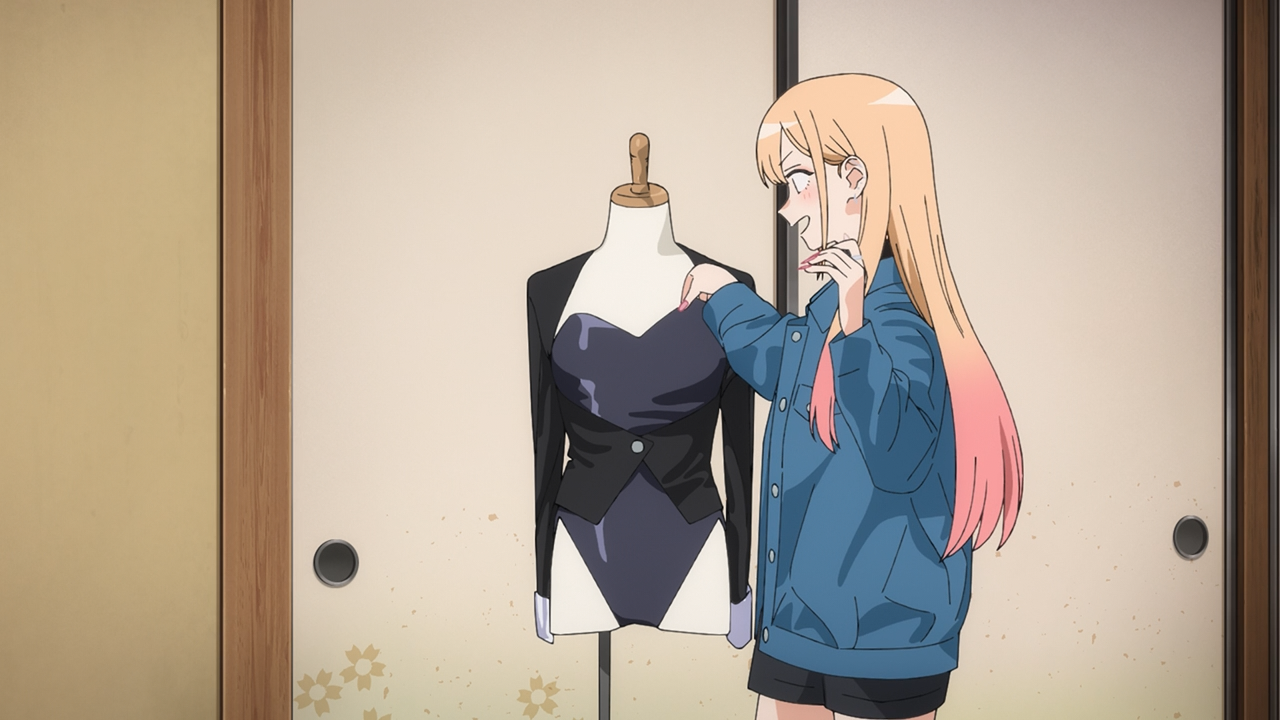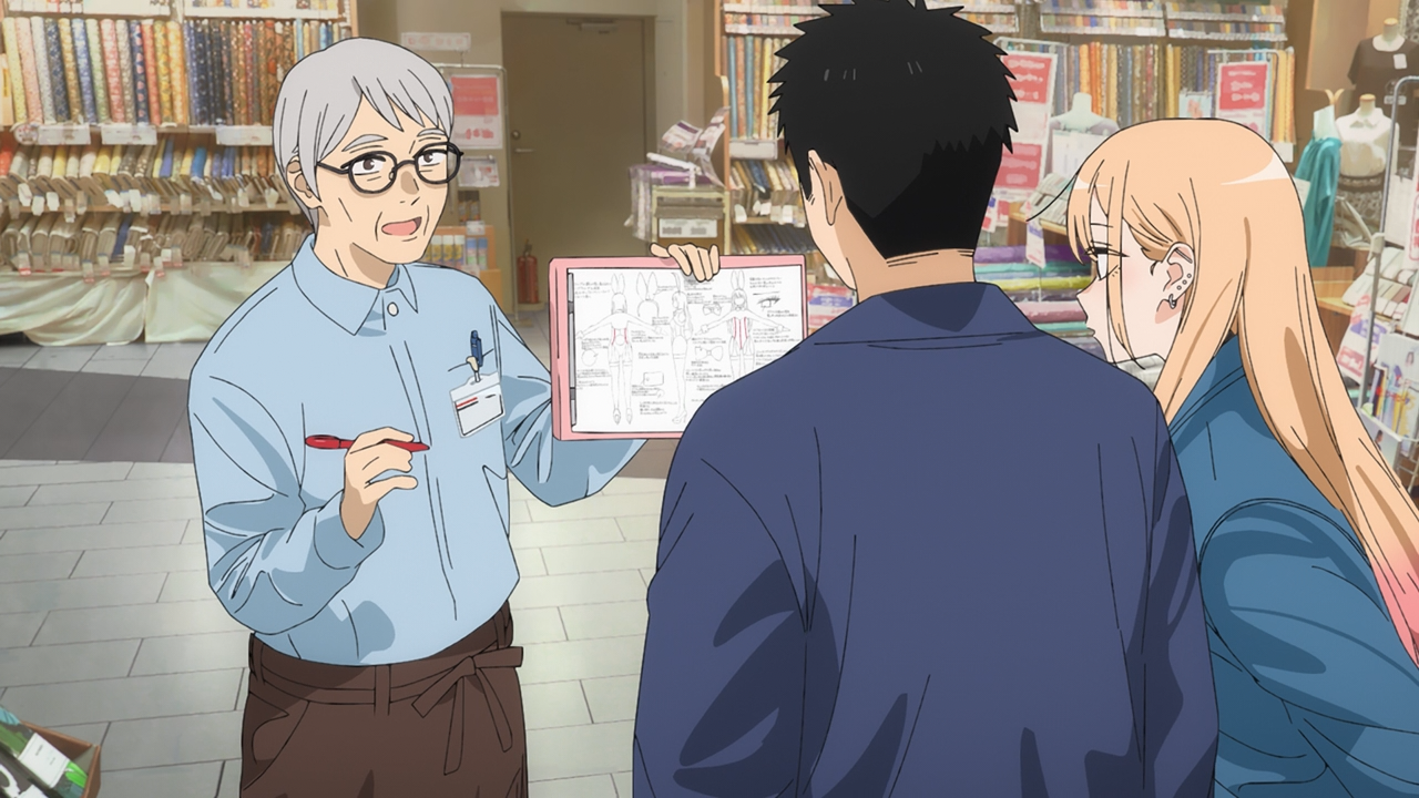 But it was thanks to him that they were able to understand how to properly make it in the first place. Neither Gojo nor Marin knew about ‘boning structure’ that works like a corset to frame the outfit. I lost it again though when Marin– of all people, was the most disappointed to hear that doing this is what prevents it from falling off. Both the manager and Gojo are like: WHY IS SHE DISAPPOINTED BY THAT?! Marin please! You’re killing us here, I can’t!