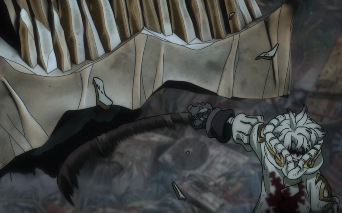 Another big thing this episode introduces to us is the powers. For some reason, going into this series, I did not think there would be powers or special abilities. That trailer I watched really went over my head because I literally don’t remember much from it aside from the giant monsters. Not sure why I didn’t realize or foresee this series having abilities, I guess I just thought they’d be using technology or something. Maybe my brain is stuck in the early days of Attack on Titan lol. Anyways, there is definitely a lot more to Rudo’s “curse marks” since they look to be the main source of his power. Especially since ain’t no way a normal kid would be able to even hurt these garbage monsters. I do like the foreshadowing they gave him in the initial battle before they revealed the true essence of his power. Since with the added context, it now makes a lot of sense how he was even able to split that garbage monster in half with a thin sheet of rusted metal or hit the monster away with a metal pipe.