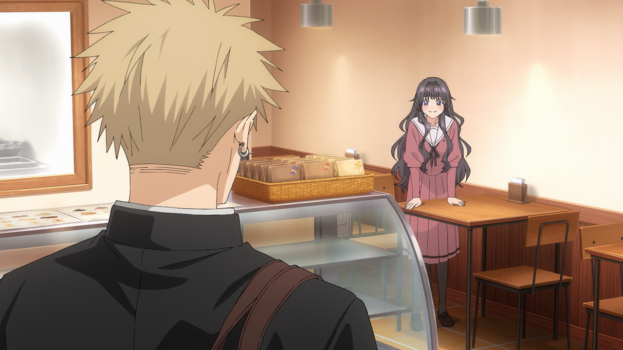 So for the mean time, the only real place the two of them can have any peaceful conversations is quite literally at Rintaro’s family’s cake shop. And this is really the highlight moments because they are exceptionally adorable with how flustered they are around each other. Unfortunately Rintaro made a mistake of not only pushing his own assumptions of what Kaoruko may think of him now that she knew he’s a student from Chidori, but also felt like things wouldn’t turn out well if she were to associate with him. That of course hurt Kaoruko because she was happy to learn he attended a school right next door to her, and it saddened her that he thought of her that way.