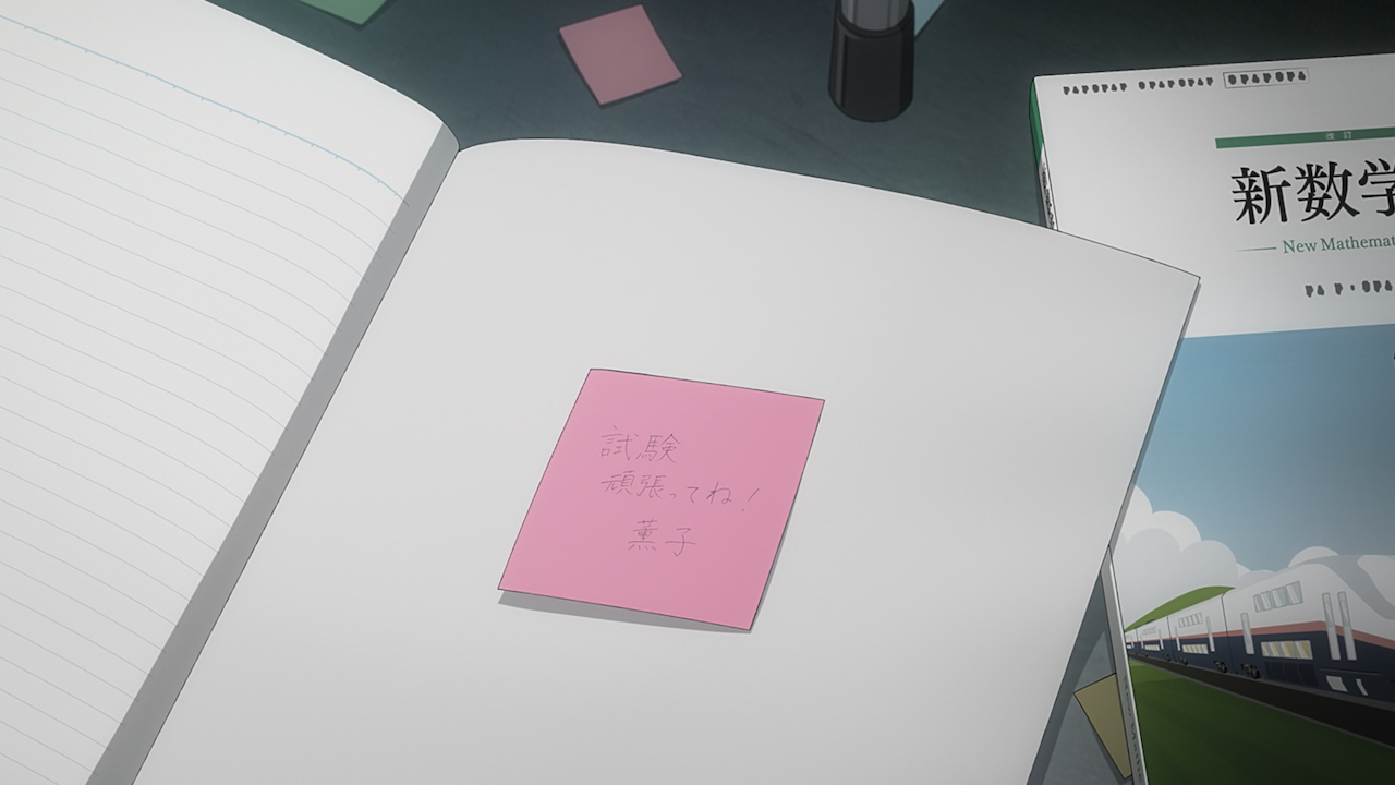 And while Rintaro refused her earnest request to not meet Kaoruko anymore, he does understand where she’s coming from. He recognizes just how much she cares about Kaoruko, and how much pain she’s in to feel so powerless to help her. And while he didn’t regret his decision, he’s not so heartless to not feel bad about it. But her words has gotten through to him to some extent, as we’re seeing some hesitation to immediately text Kaoruko about the results of his exams.